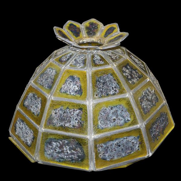 Lampadario stile Tiffany con vetri piombati verdi, XX secolo