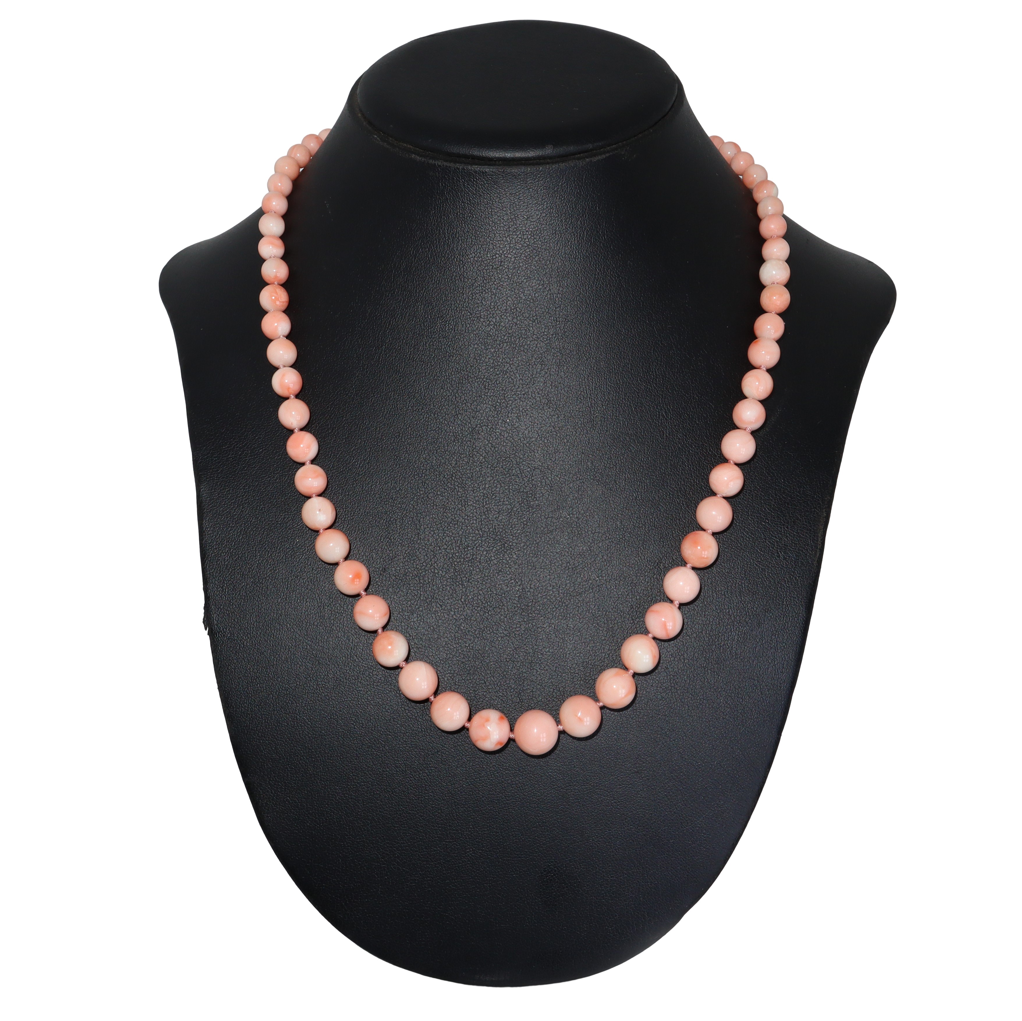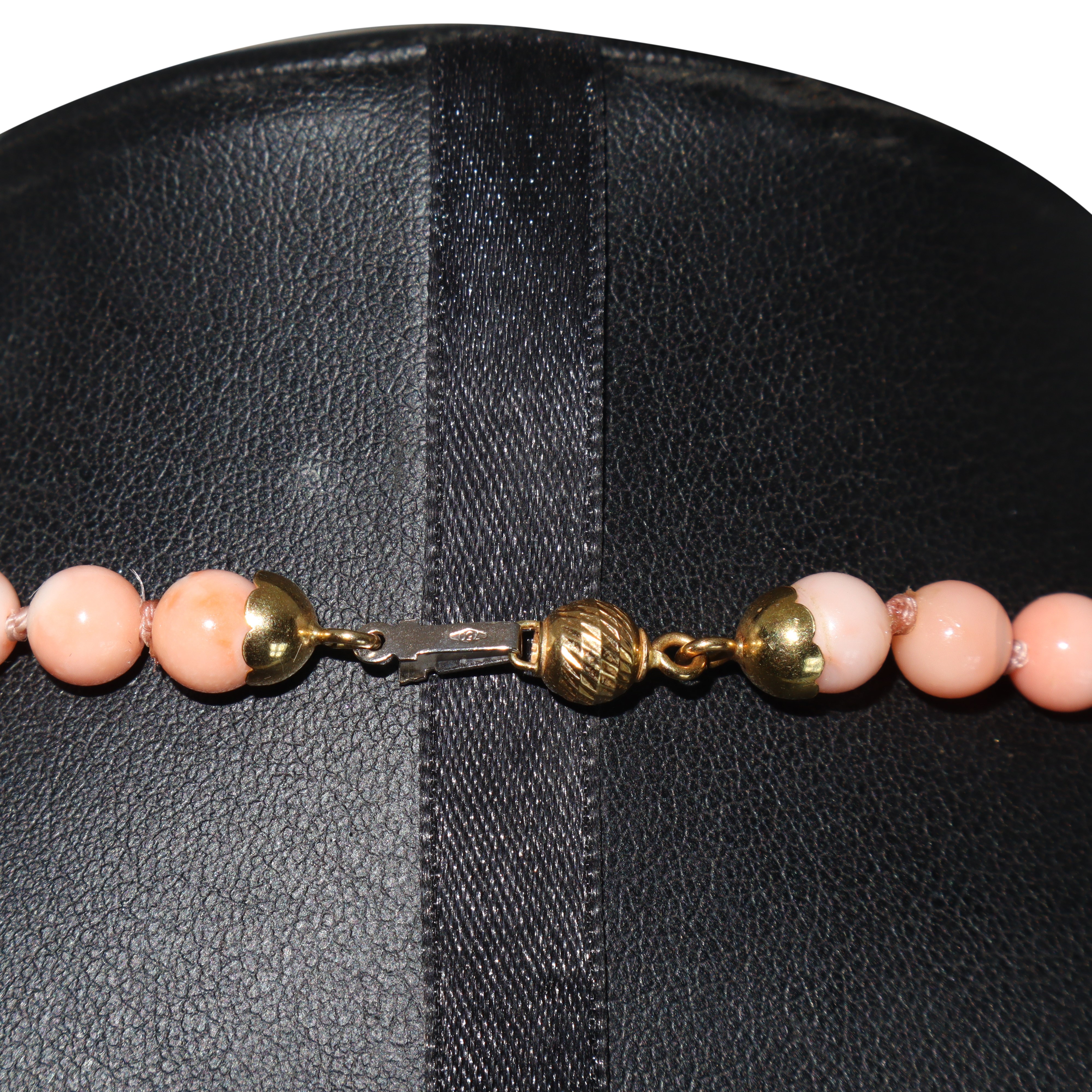 Collana ad un filo in corallo rosa con susta in oro giallo 750