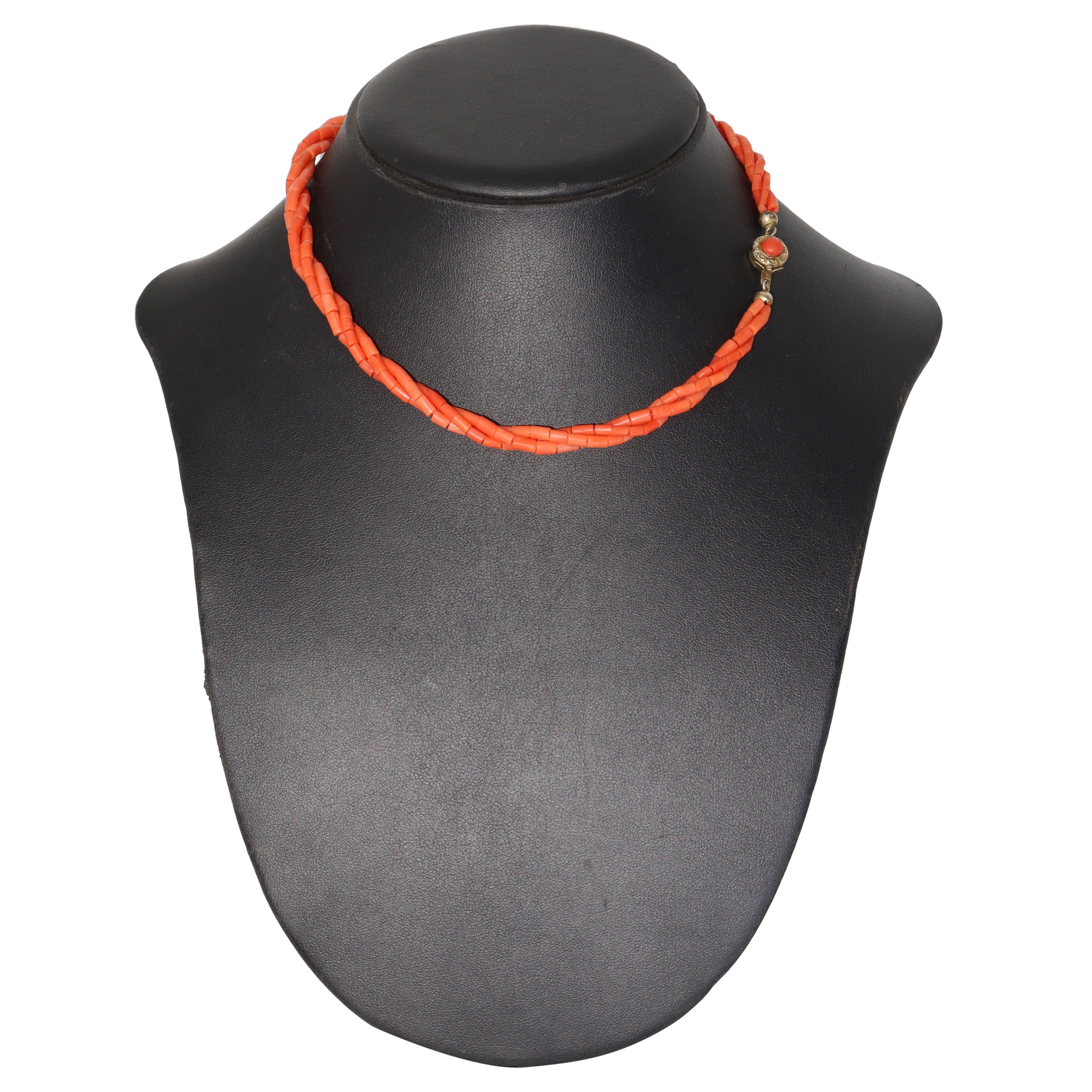 Collana in corallo mediterraneo a cannette con chiusura in argento 800
