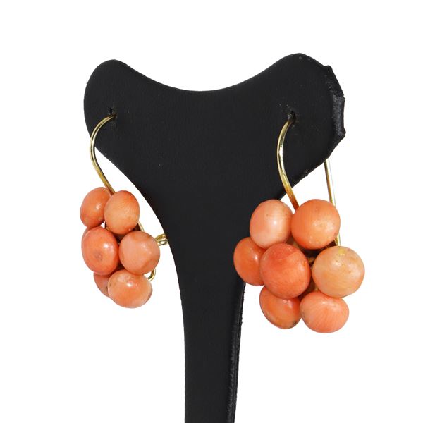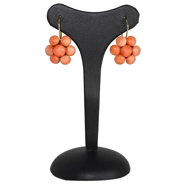 Orecchini in oro giallo 750 con corallo salmone a guisa di fiore