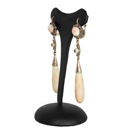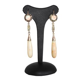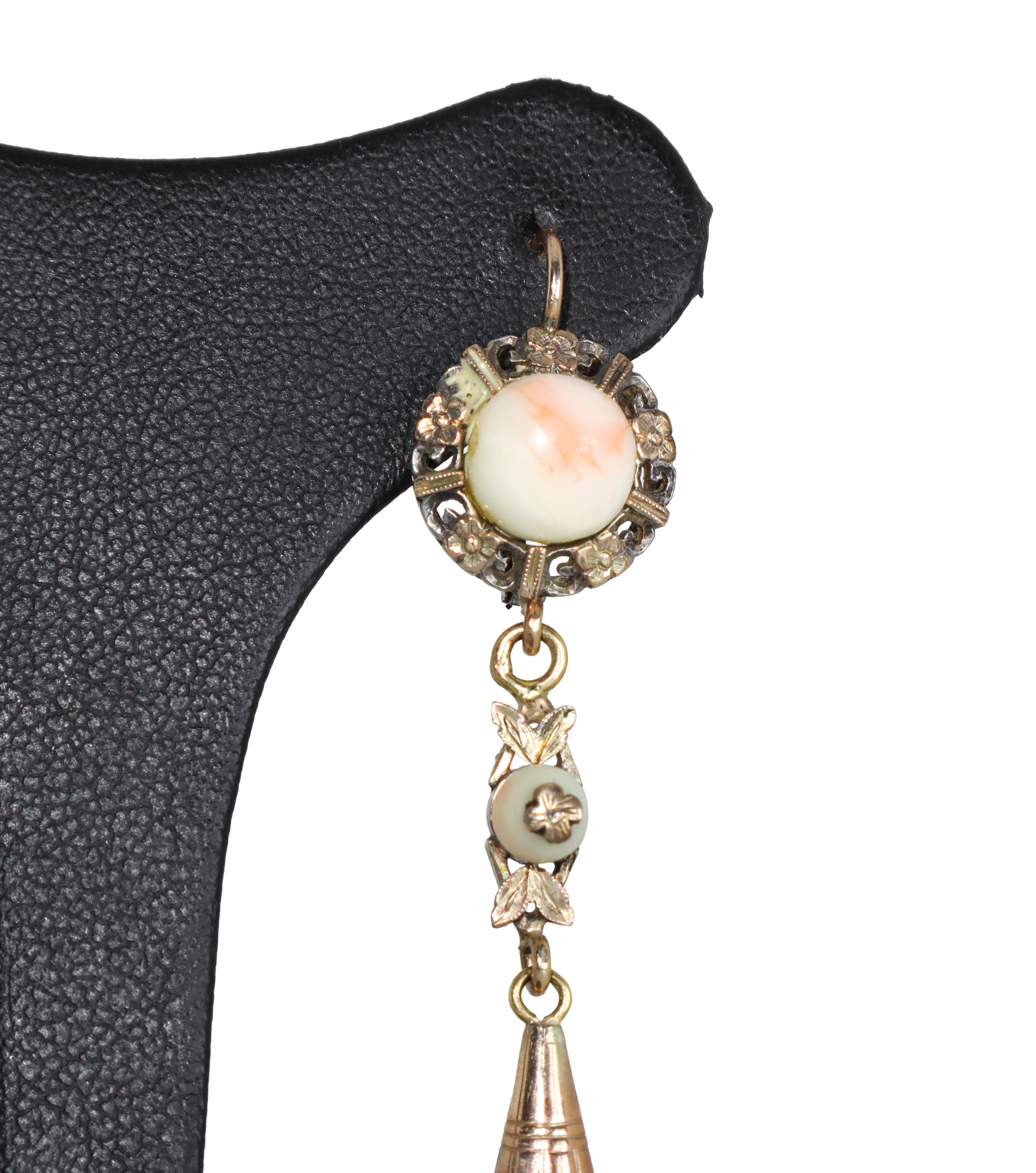 Orecchini pendenti in oro a basso titolo e corallo bianco