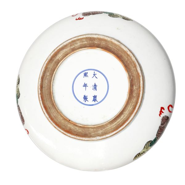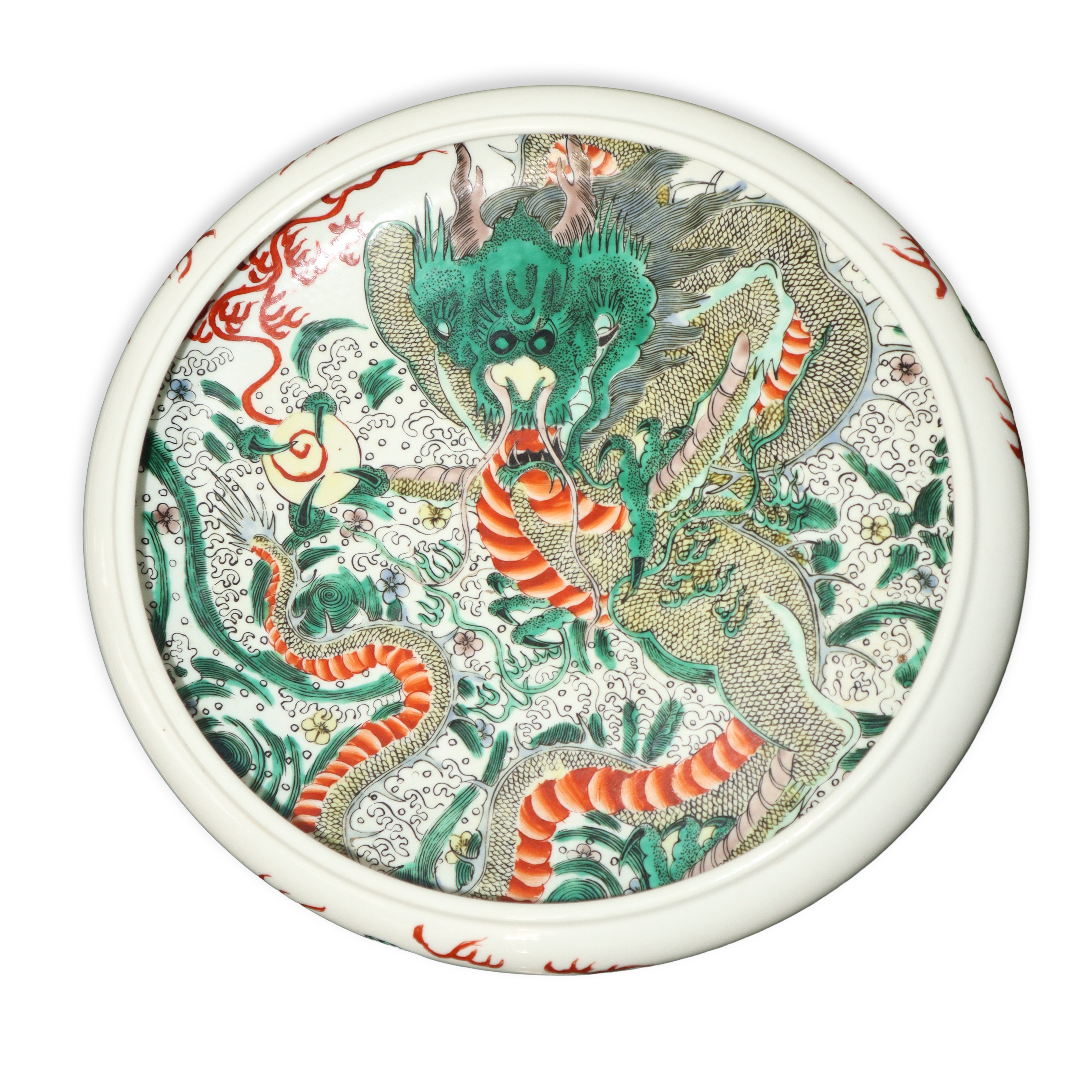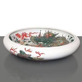 Grande lavapennelli con dragone verde e decori vegetali