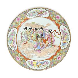 Piatto cinese da muro in porcellana decorata a mano con scene femminili