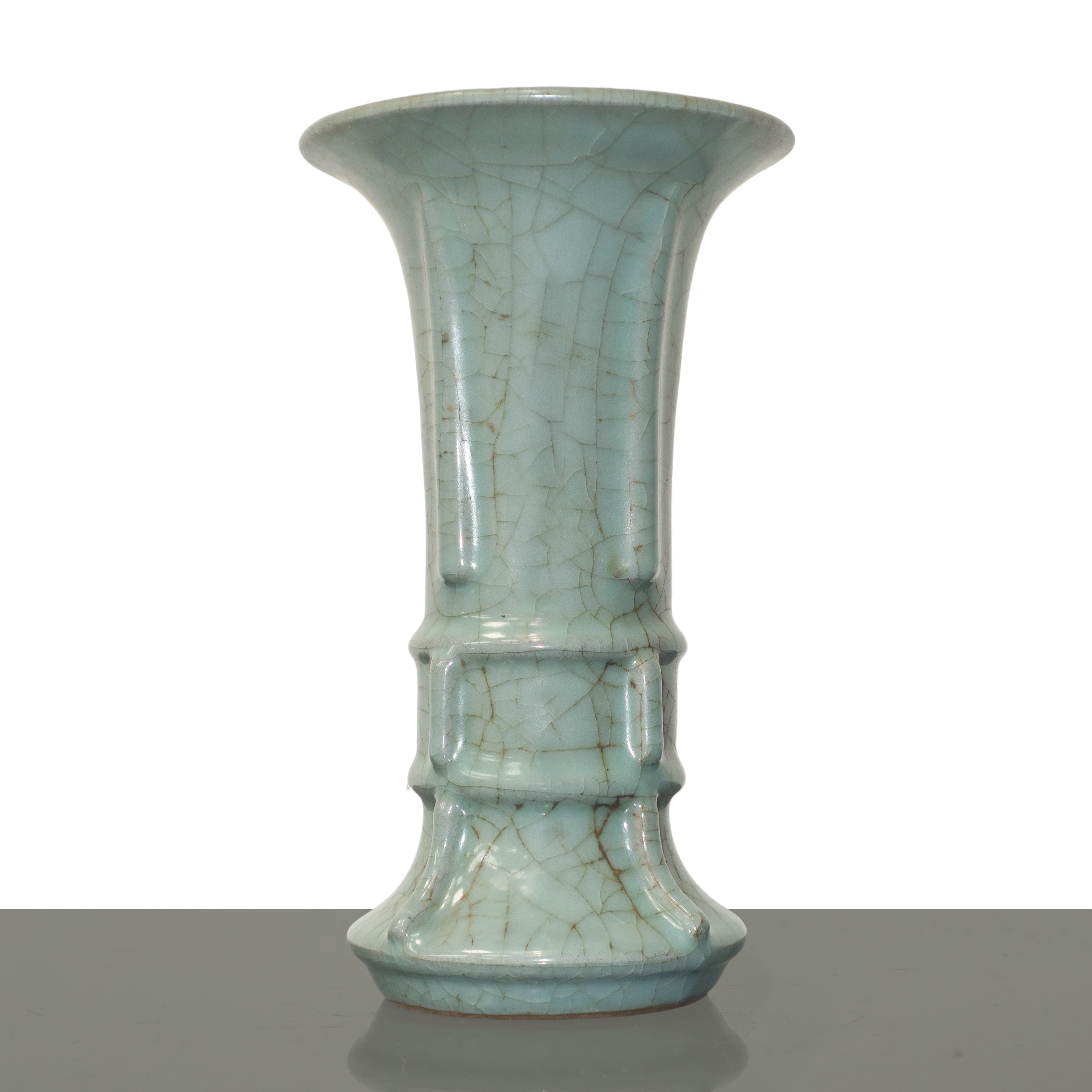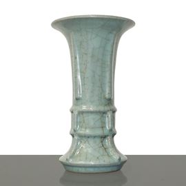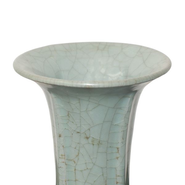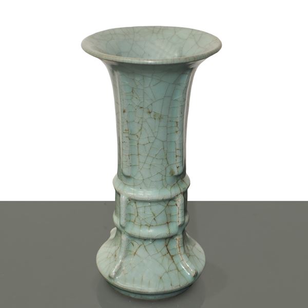Vaso cinese di tipo Gu con smalto celadon color azzurro polvere