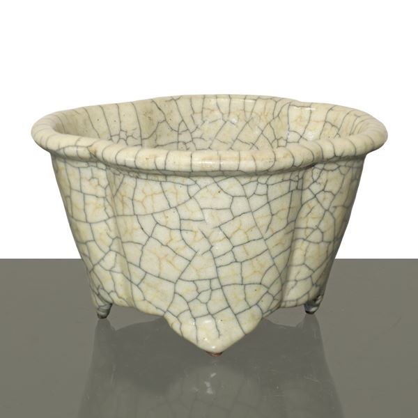 Vaso cinese quadrilobato con lavorazione in stile Ge