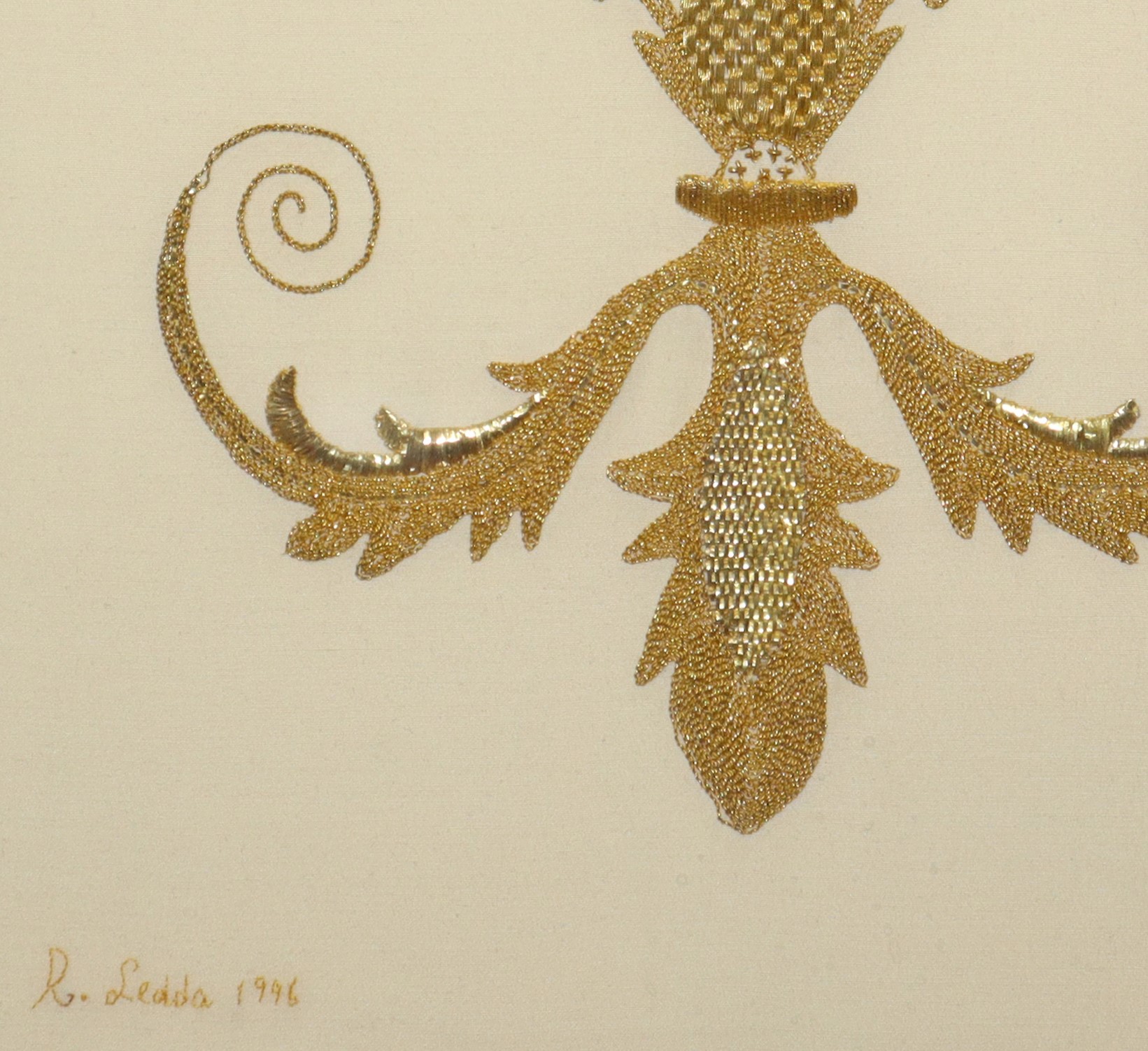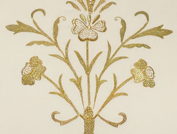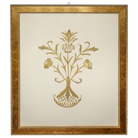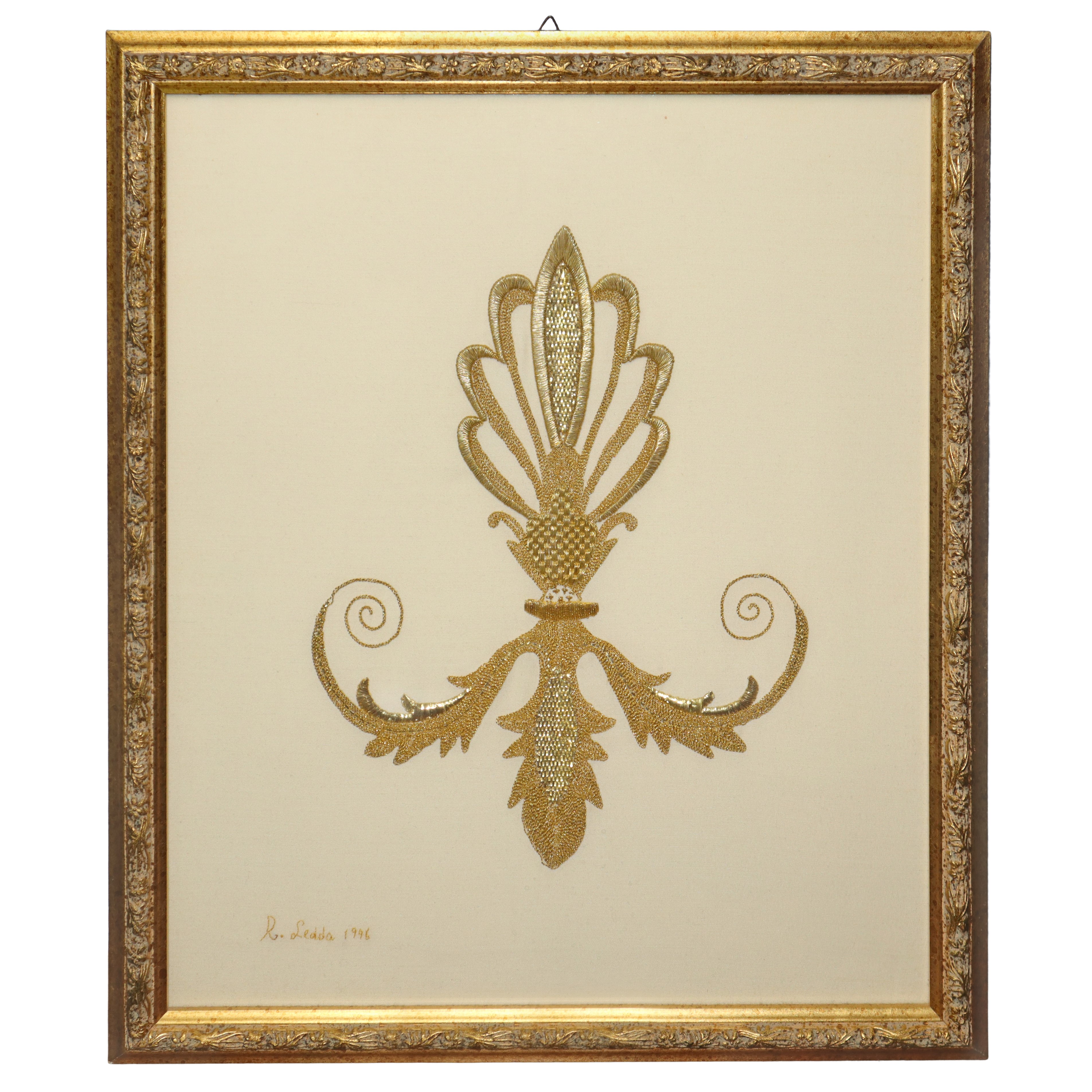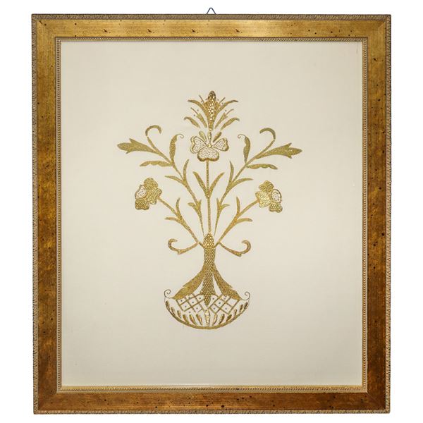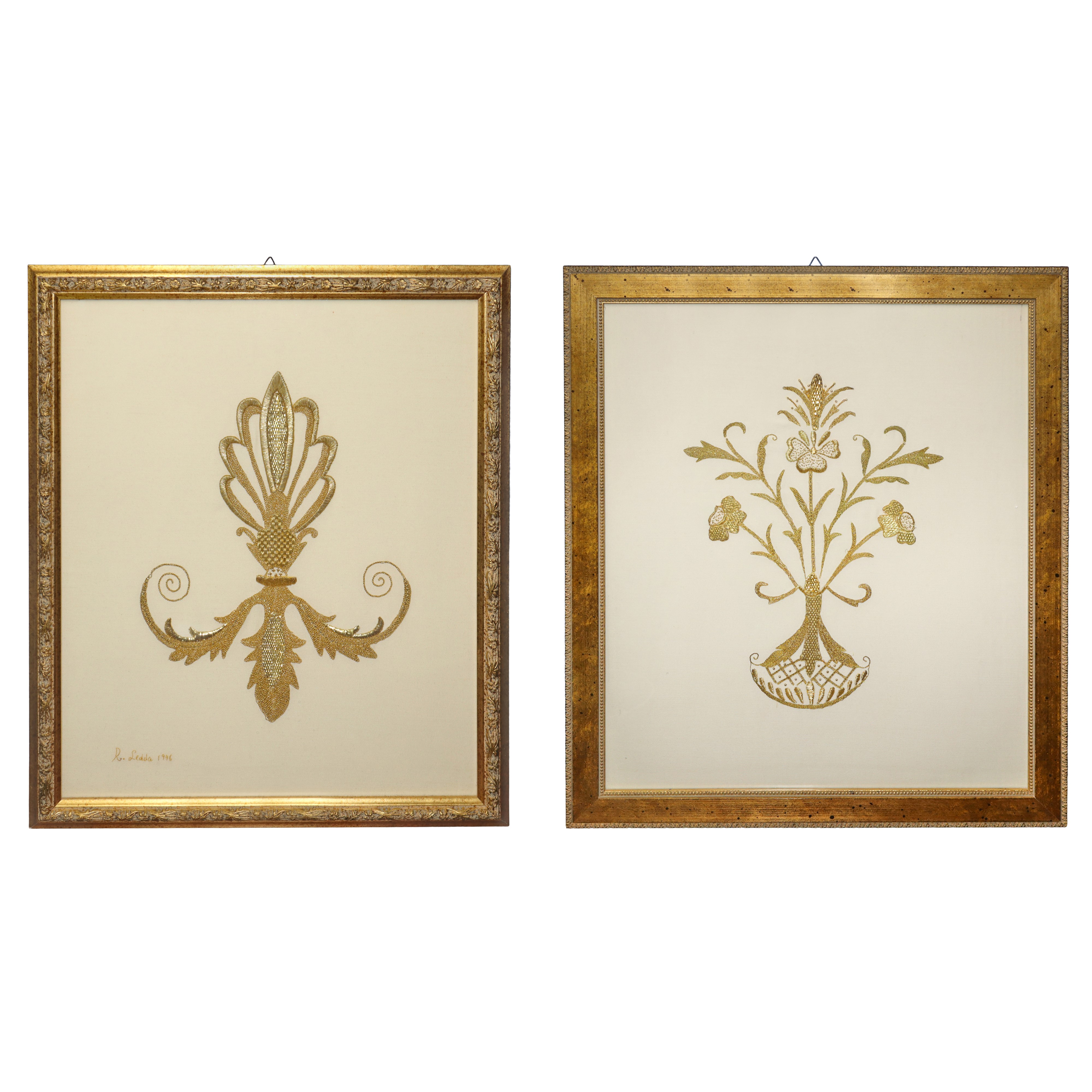 Coppia di ricami in oro all'interno di cornici in legno dorate