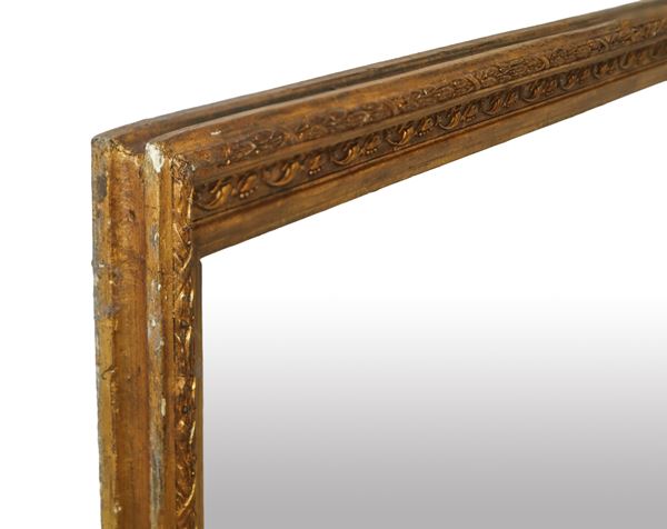 Specchiera in cornice a pastiglia in legno dorato decorata a rilievi floreali, fine XIX secolo