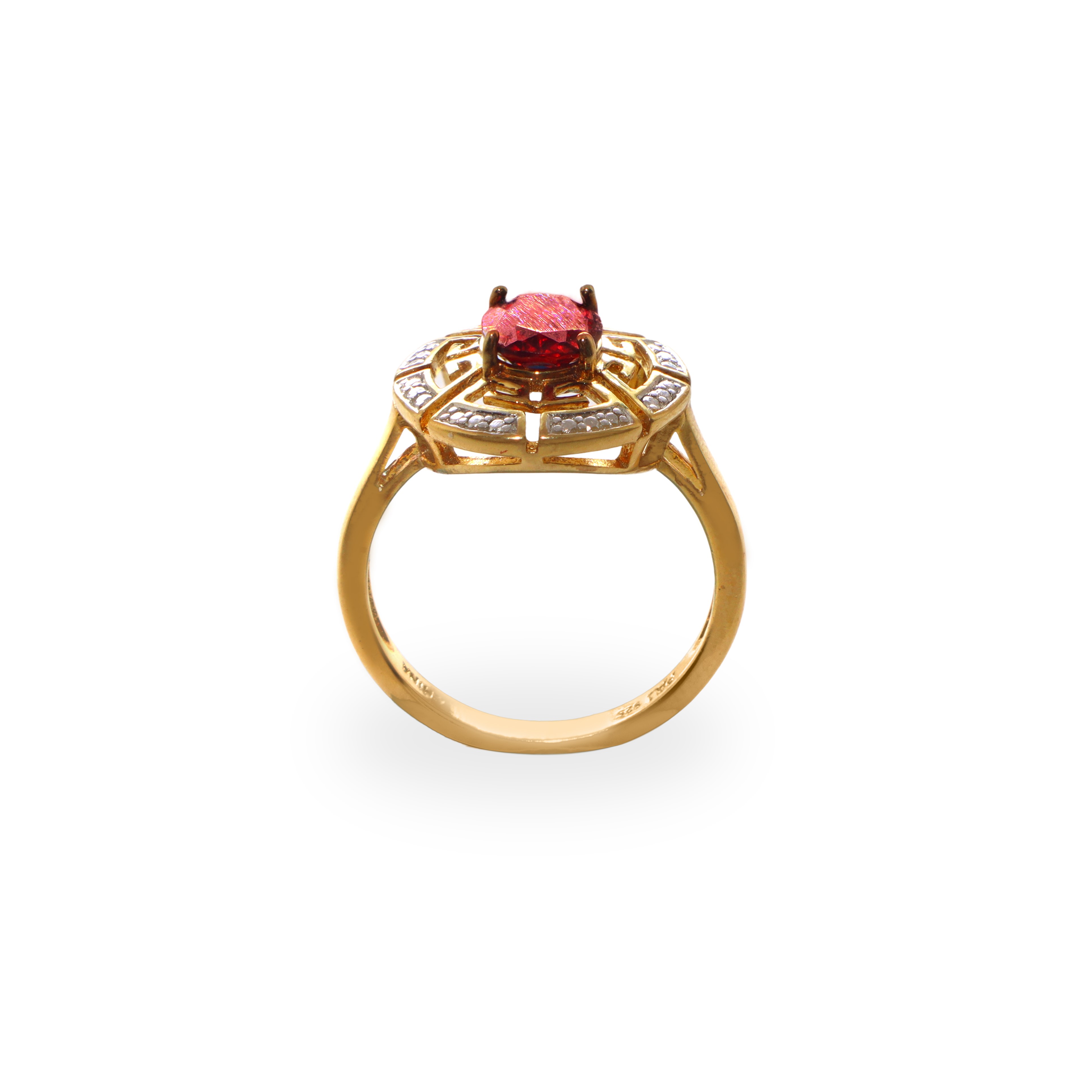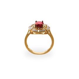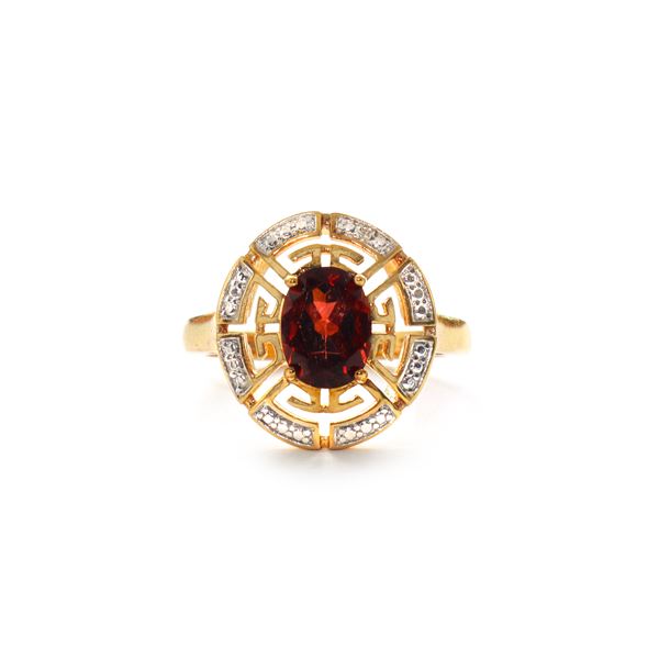 Anello in argento 925 placcato in oro 14 kt con granato centrale e diamanti