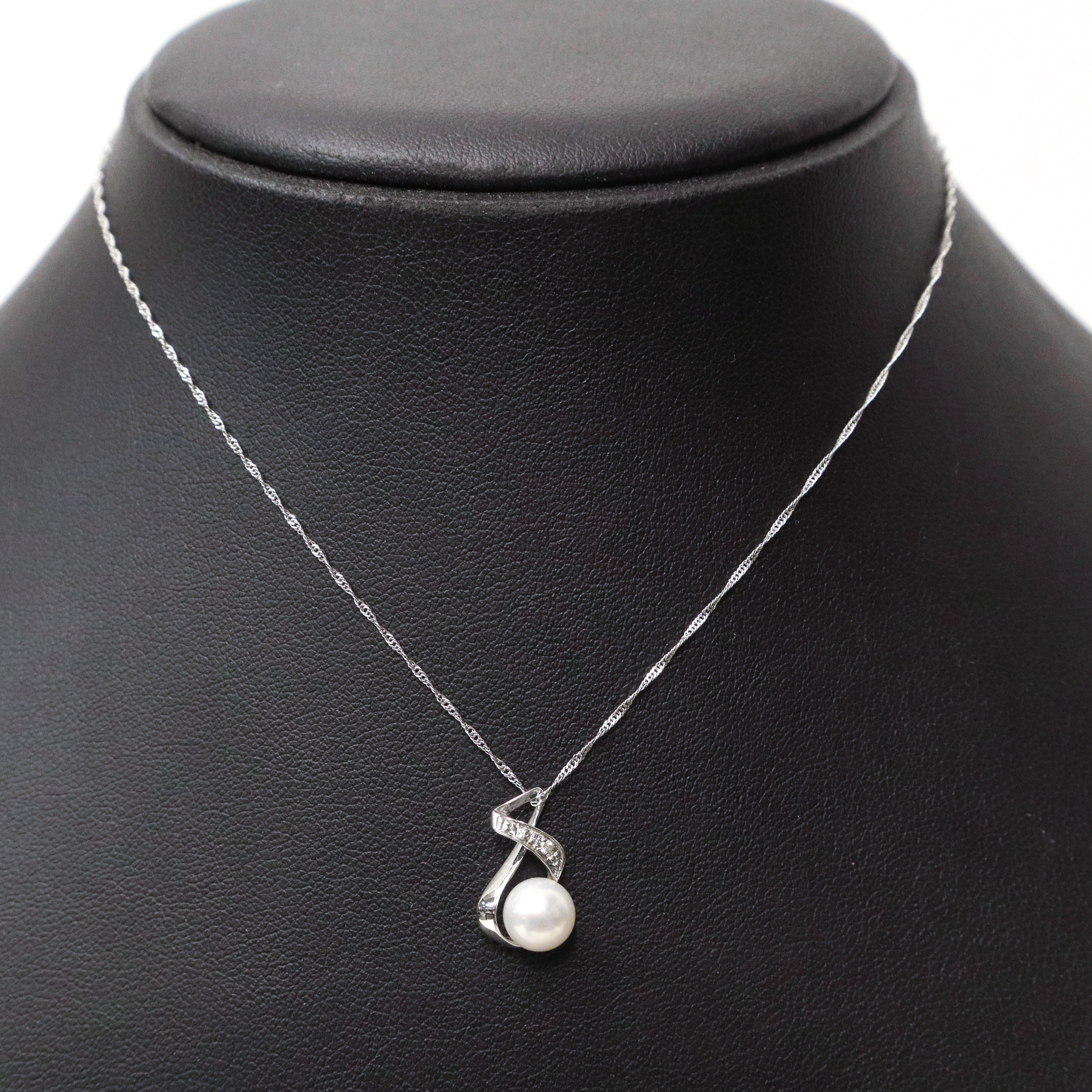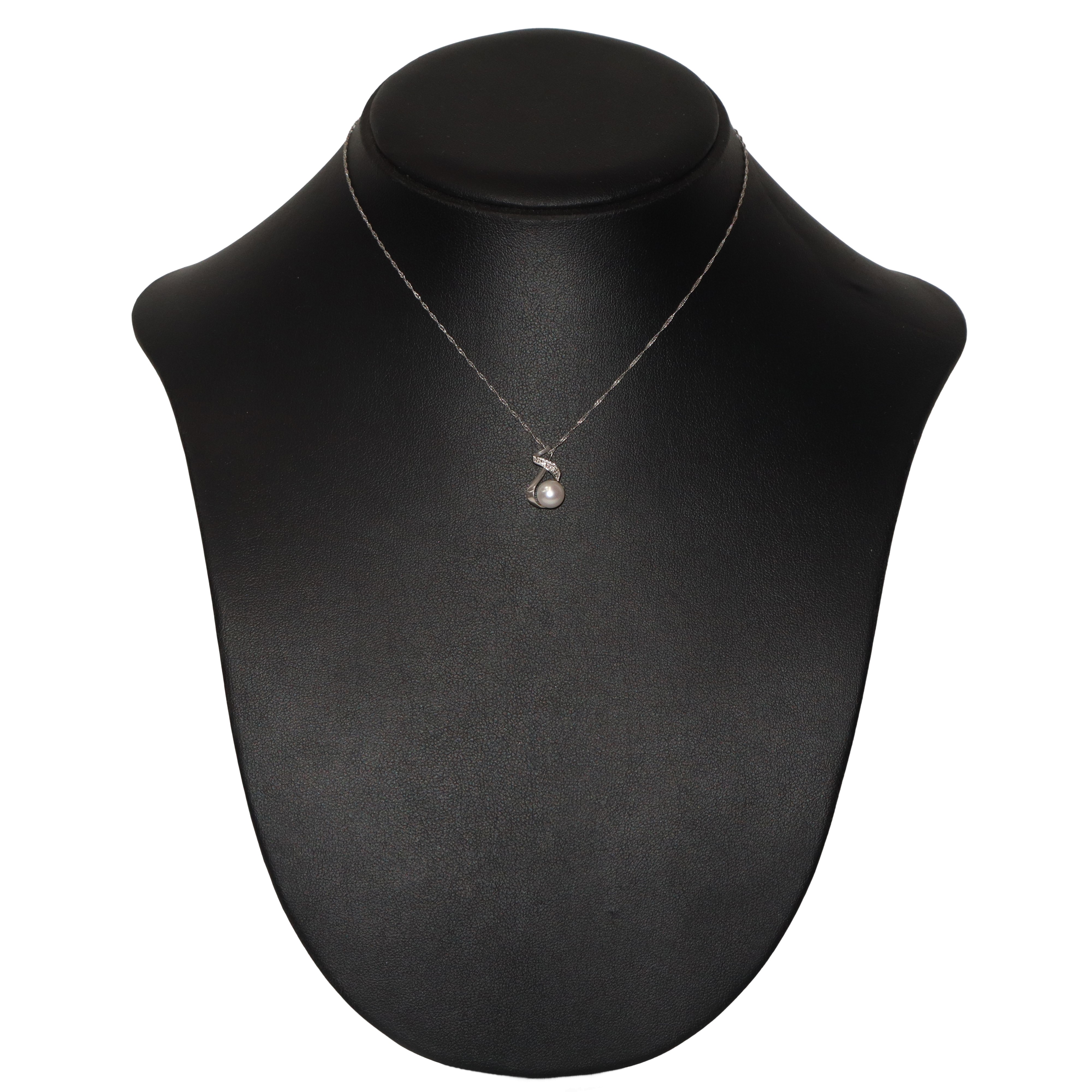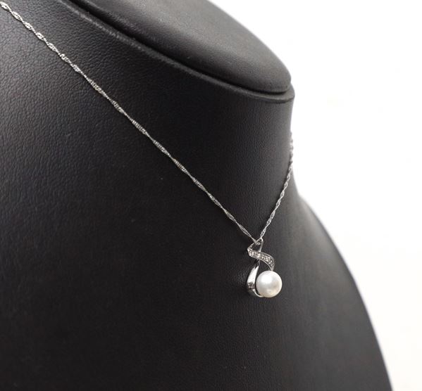 Collana in oro bianco 750 con pendentif con perla bianca e scaglie di brillanti