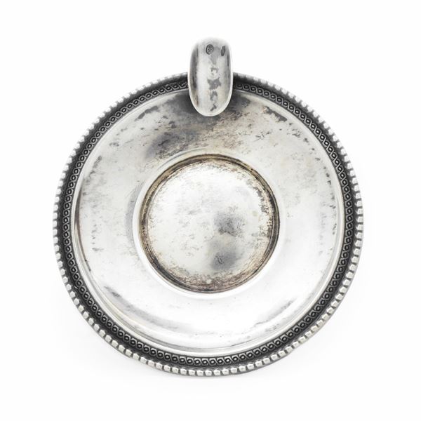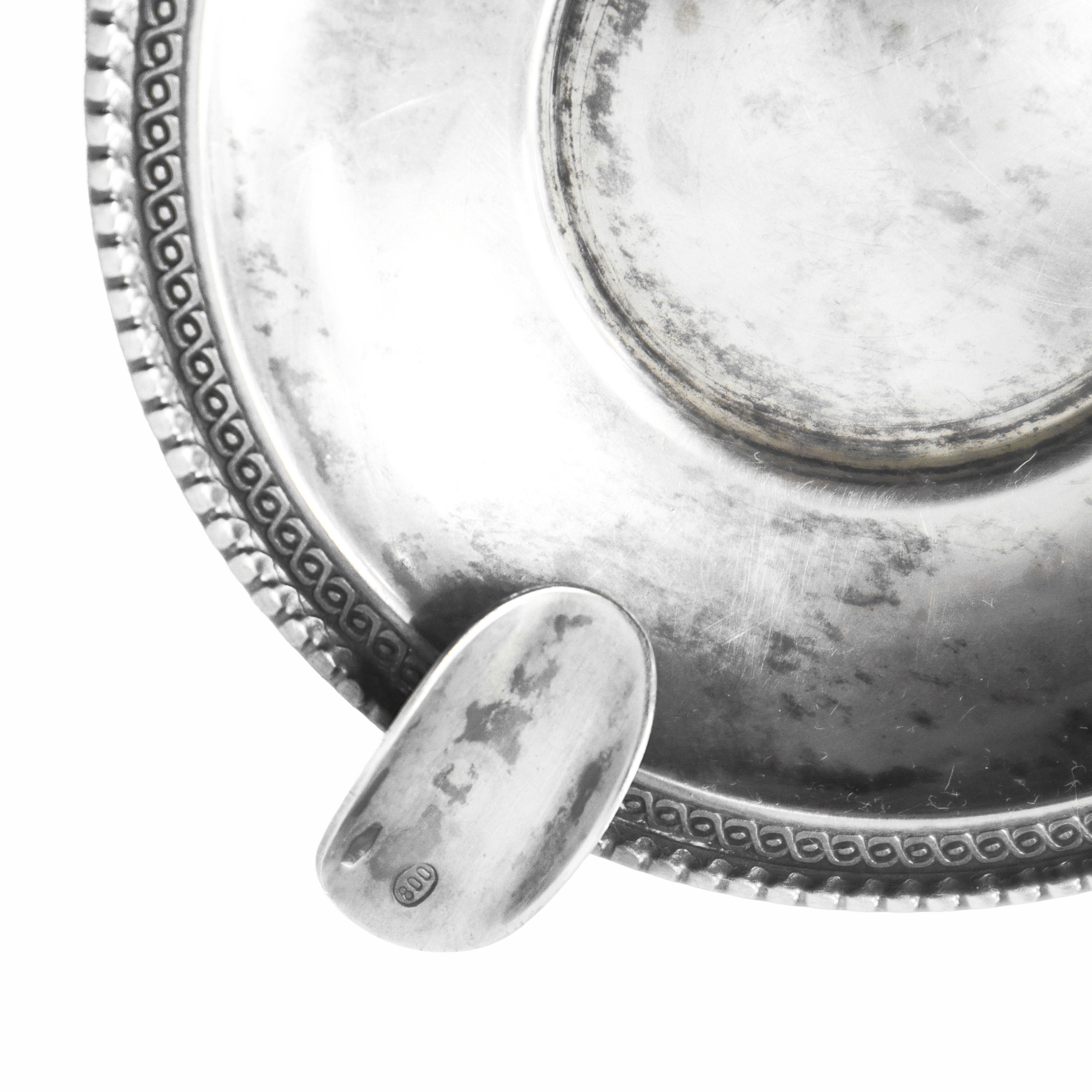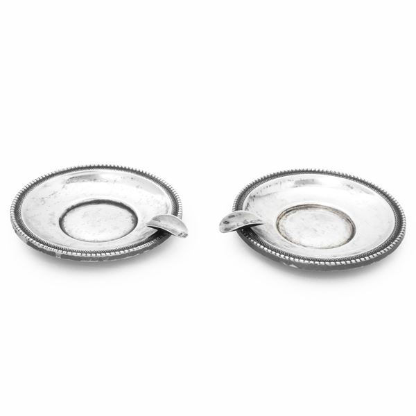 Coppia di posaceneri, argento 800. Diametro cm 8,5