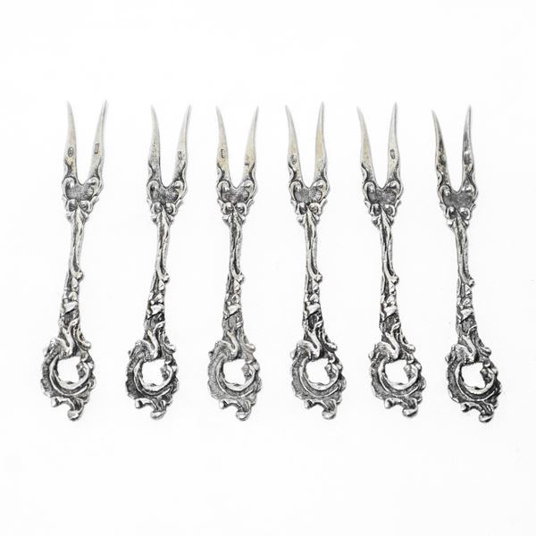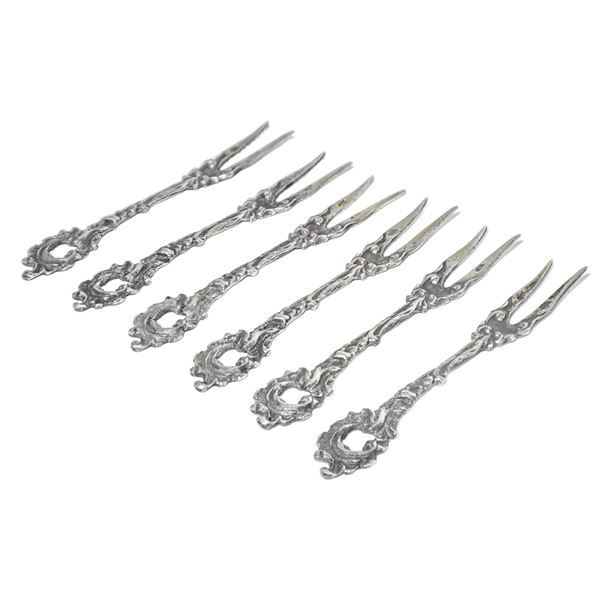N 6 forchettine da aperitivo in argento 800