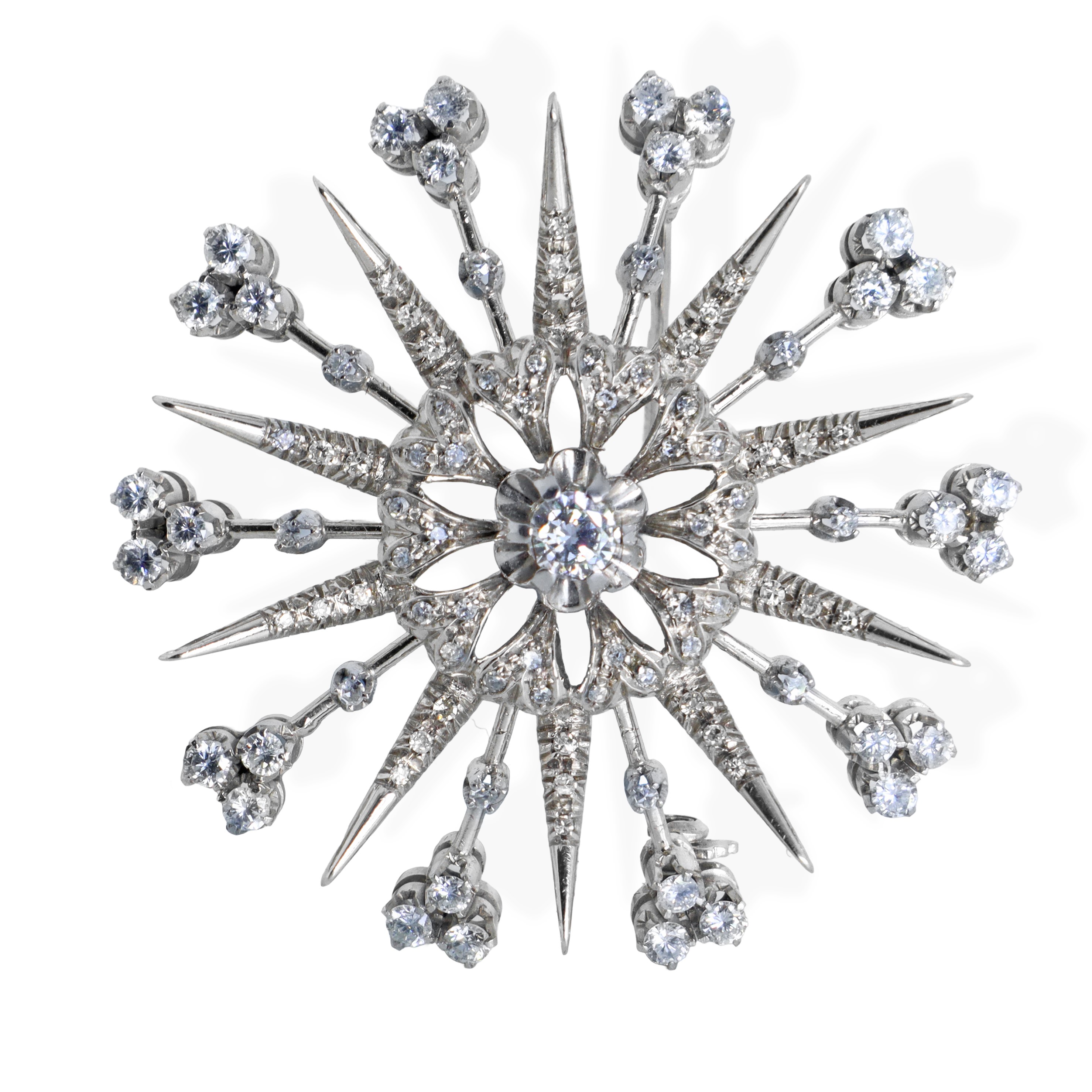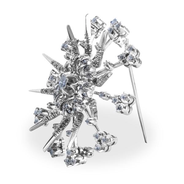 Spilla a stella in oro bianco con diamanti taglio brillante