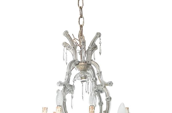 Lampadario a sospensione dodici luci in vetro di Boemia, Anni '30 - '40
