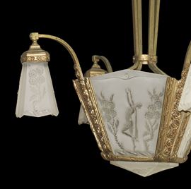 Lampadario Art Decò in vetro molato con decori classici