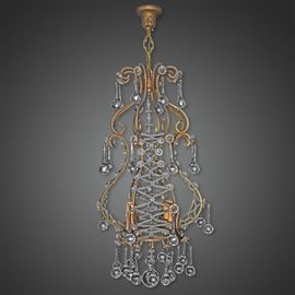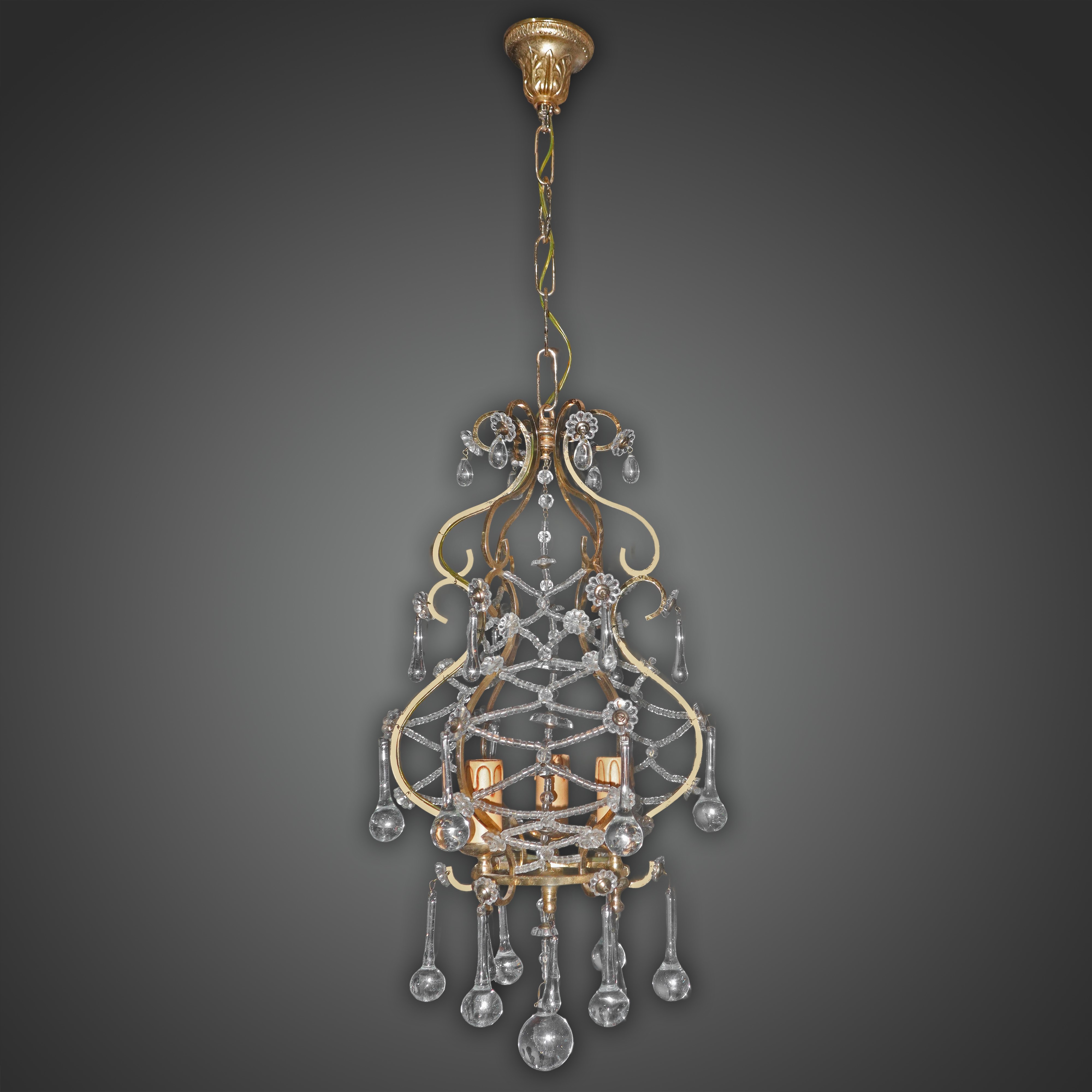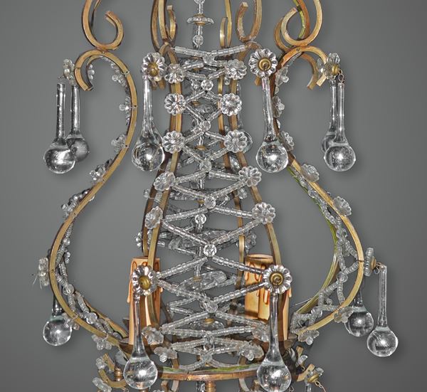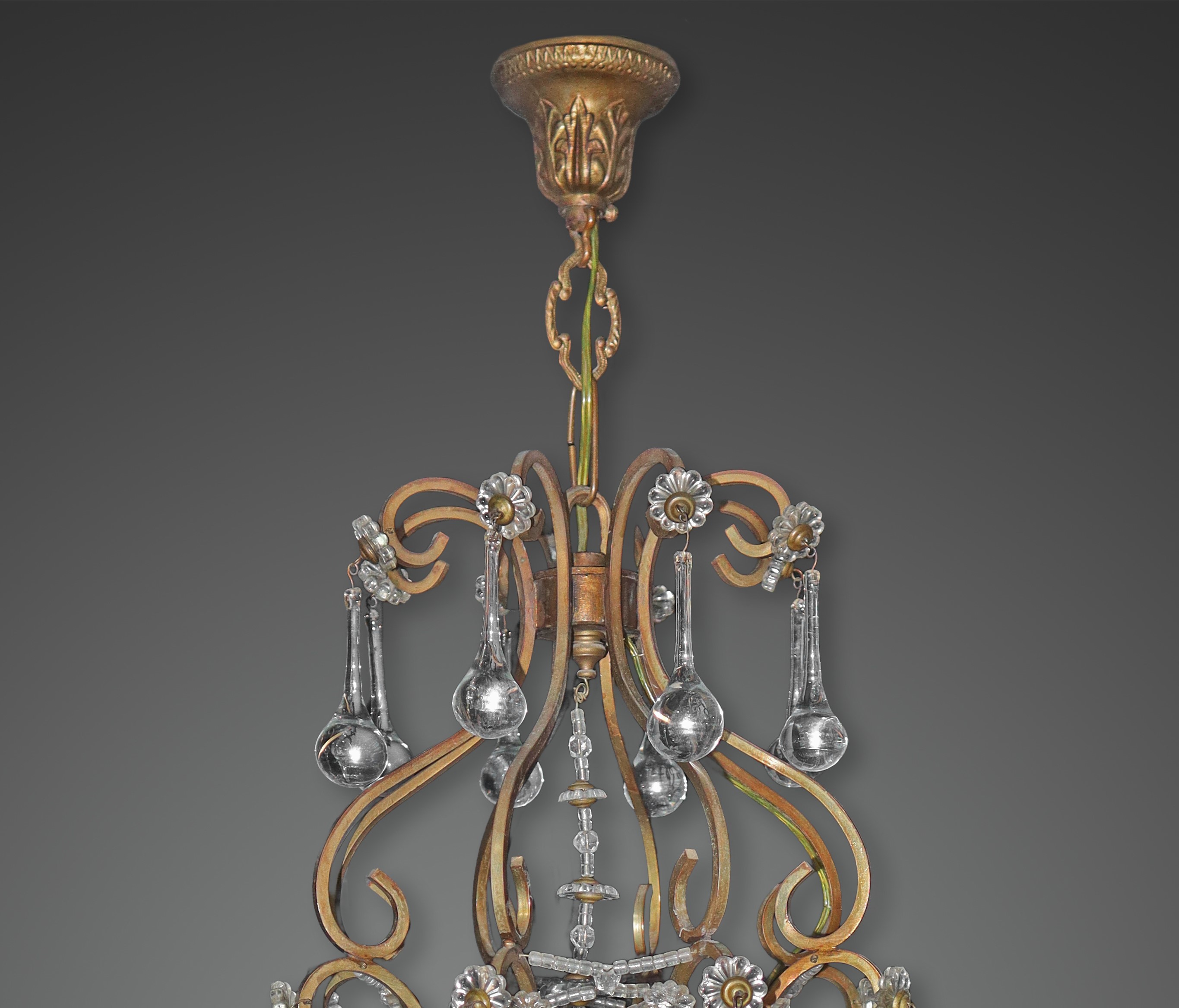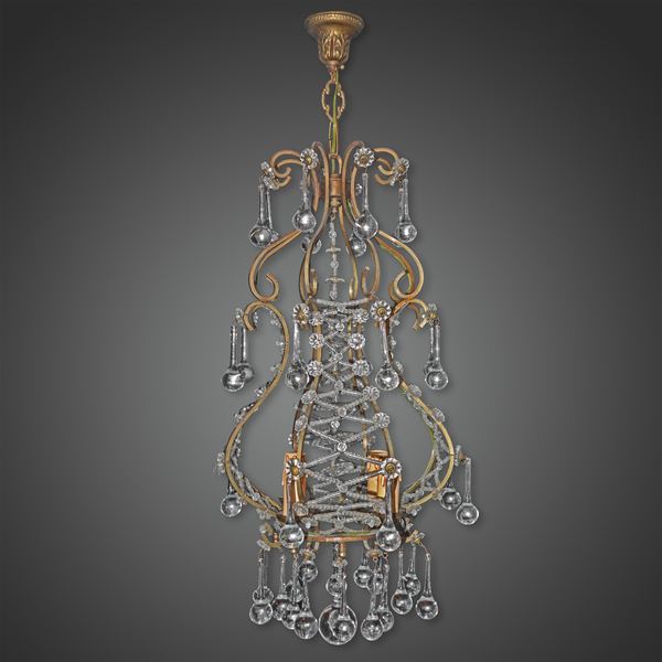 Lampadario in metallo a 4 luci con gocce in vetro di Murano