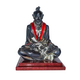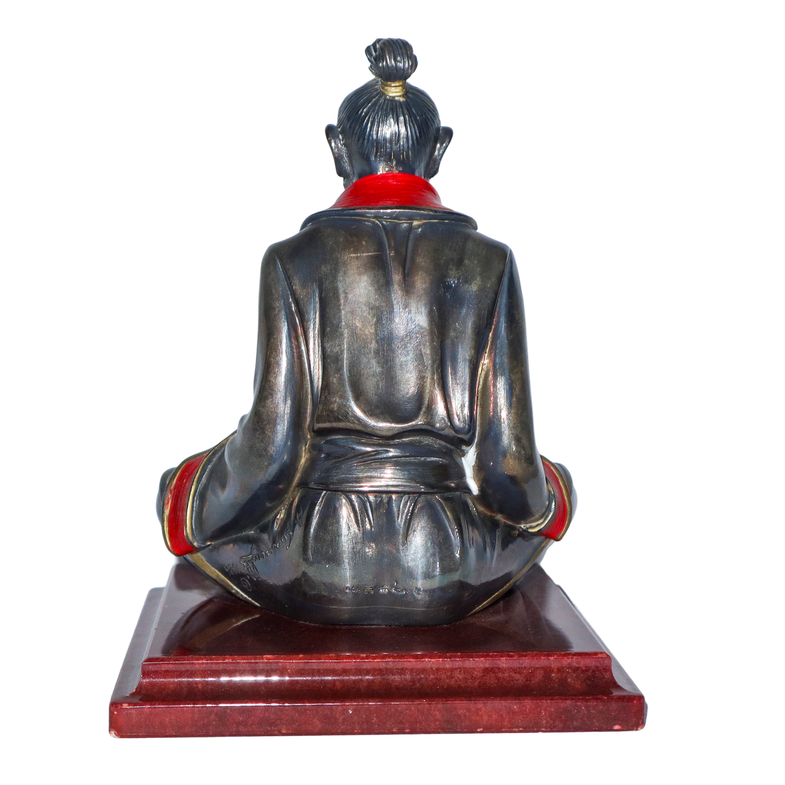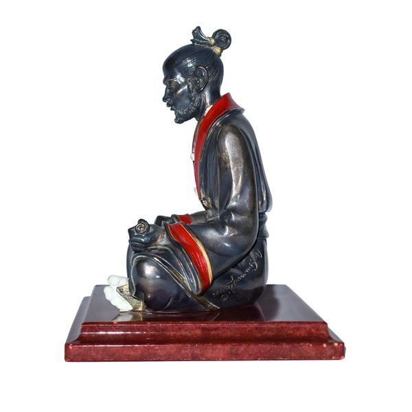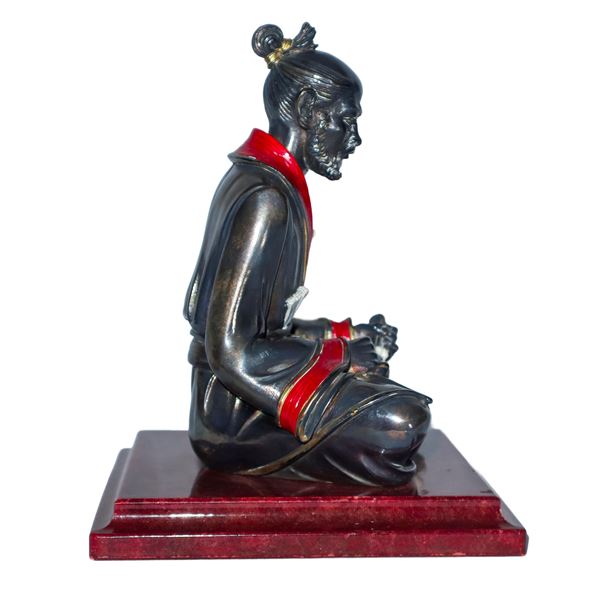 Anziano samurai su base in marmo rosso, XX sec.