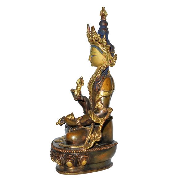 Buddha a gambe incrociate con copricapo su piedistallo, XX sec.