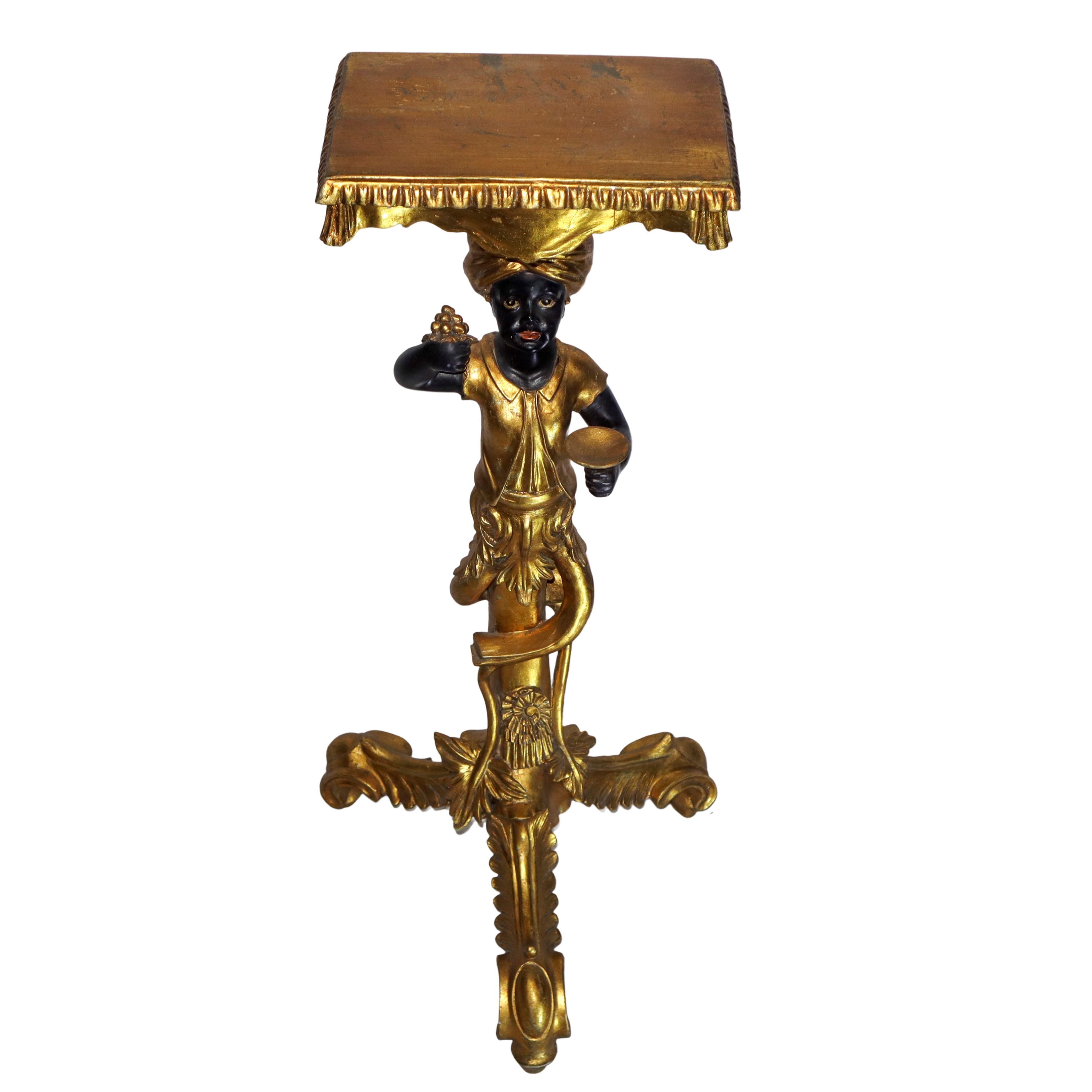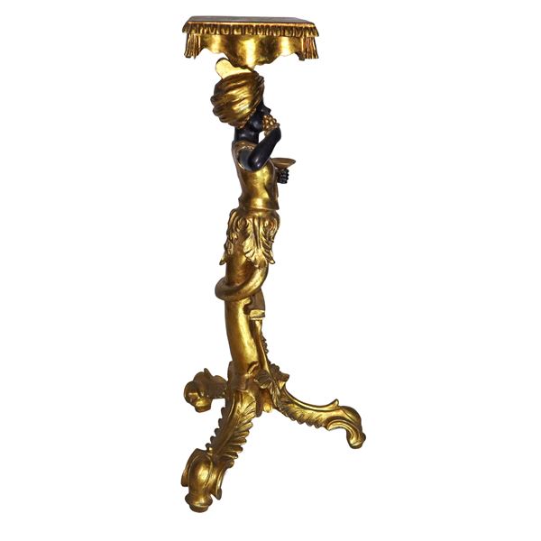 Guéridon dorato a tre piedi con moro, XX sec.