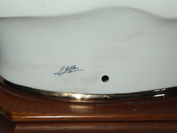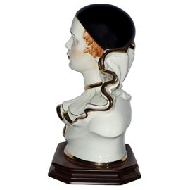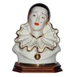 Mezzobusto di Pierrot su base ottagonale in legno, XX sec.