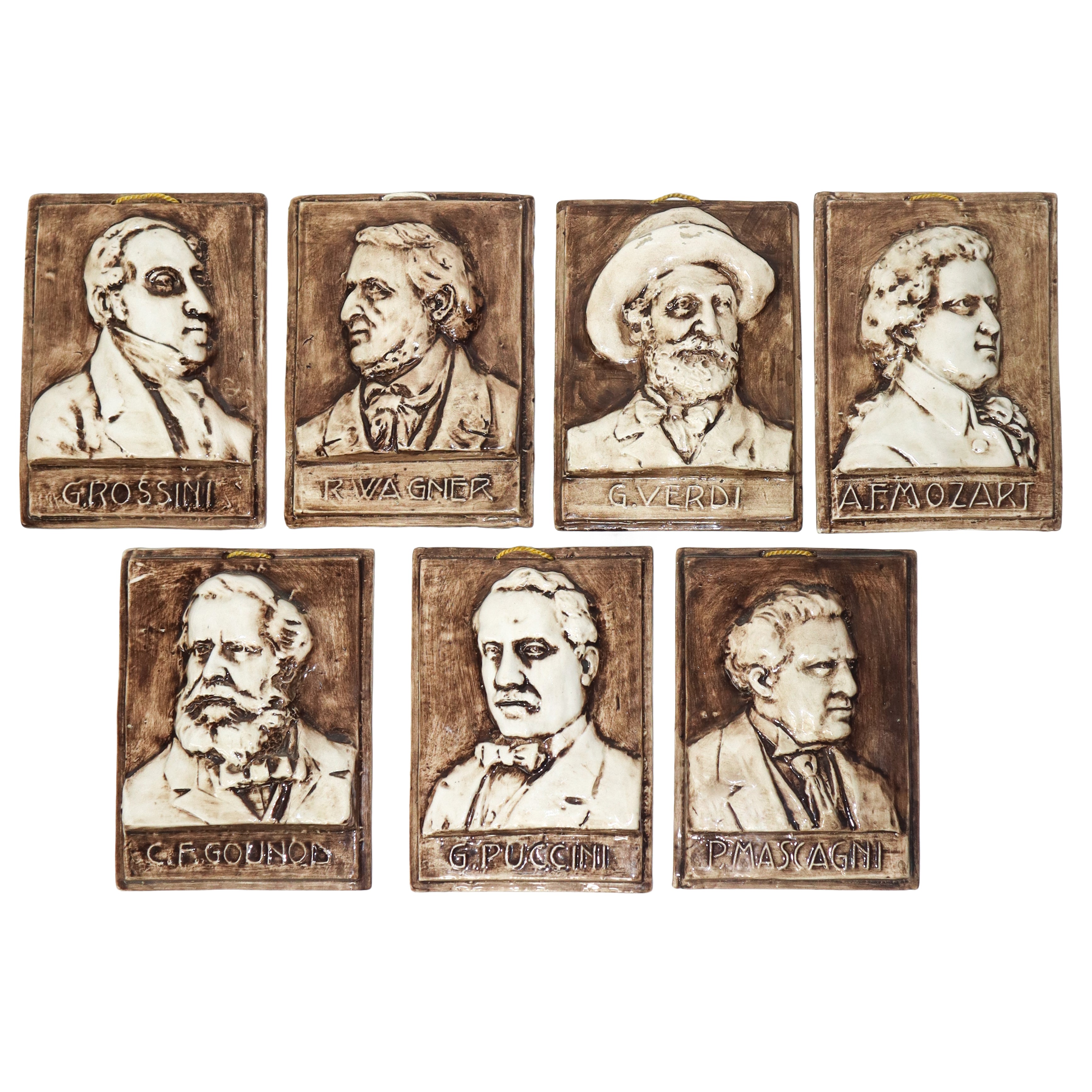 N°7 Placchette in ceramica con ritratti a rilievo di compositori, XX sec.