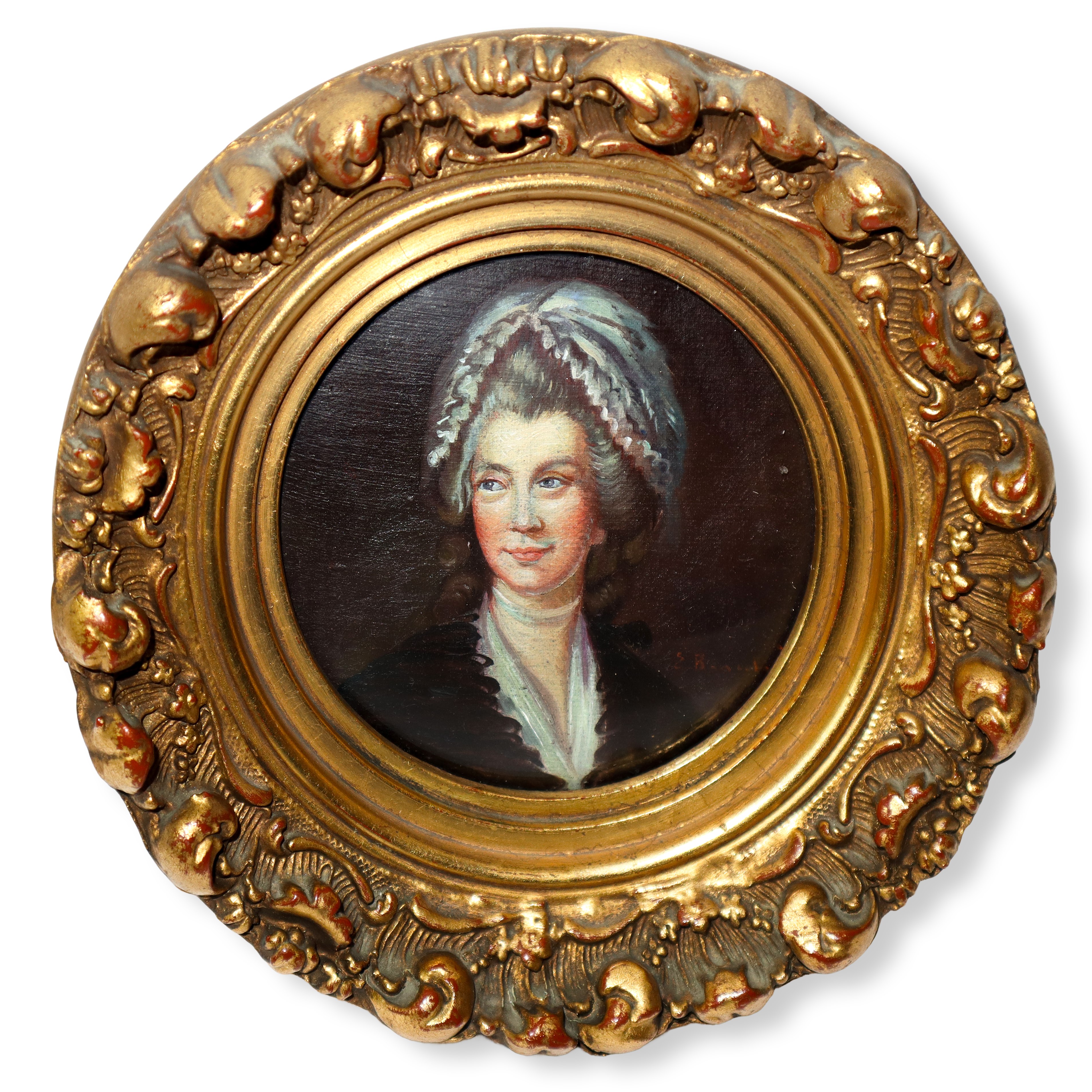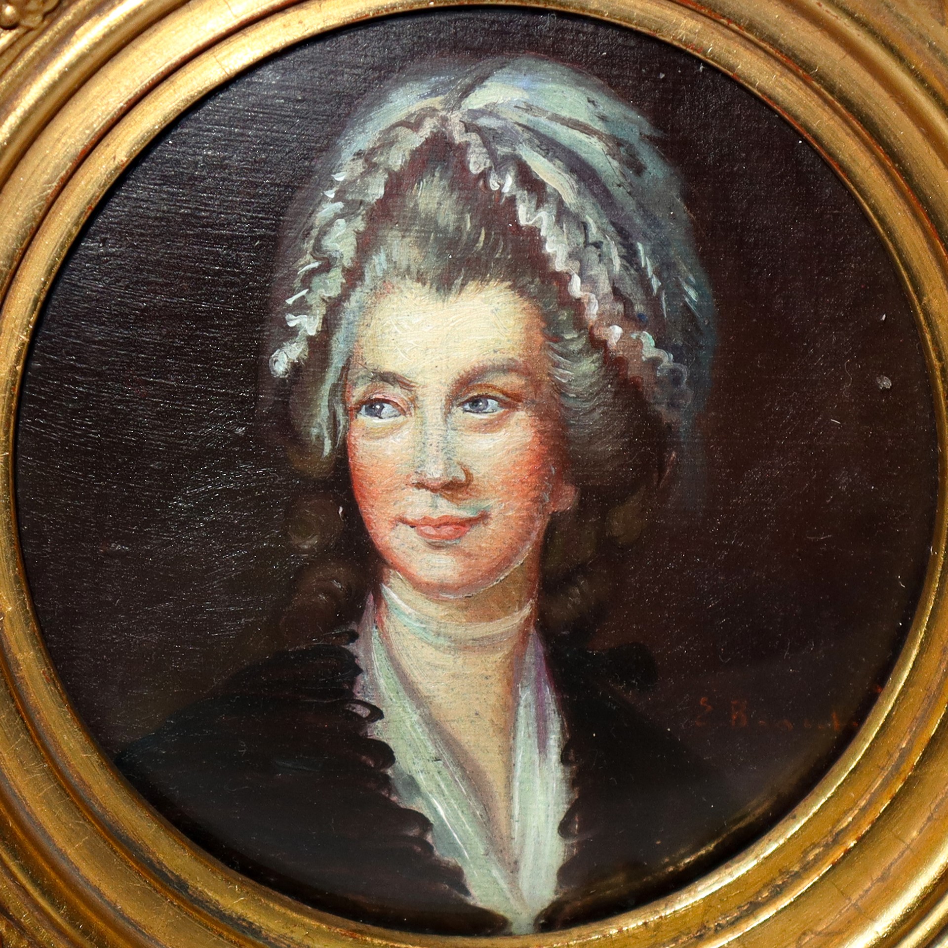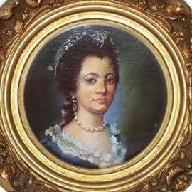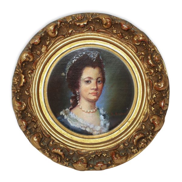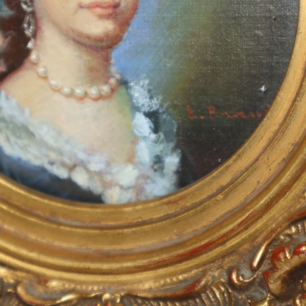 Ritratti di nobildonne, coppia di dipinti entro cornice in legno dorata
