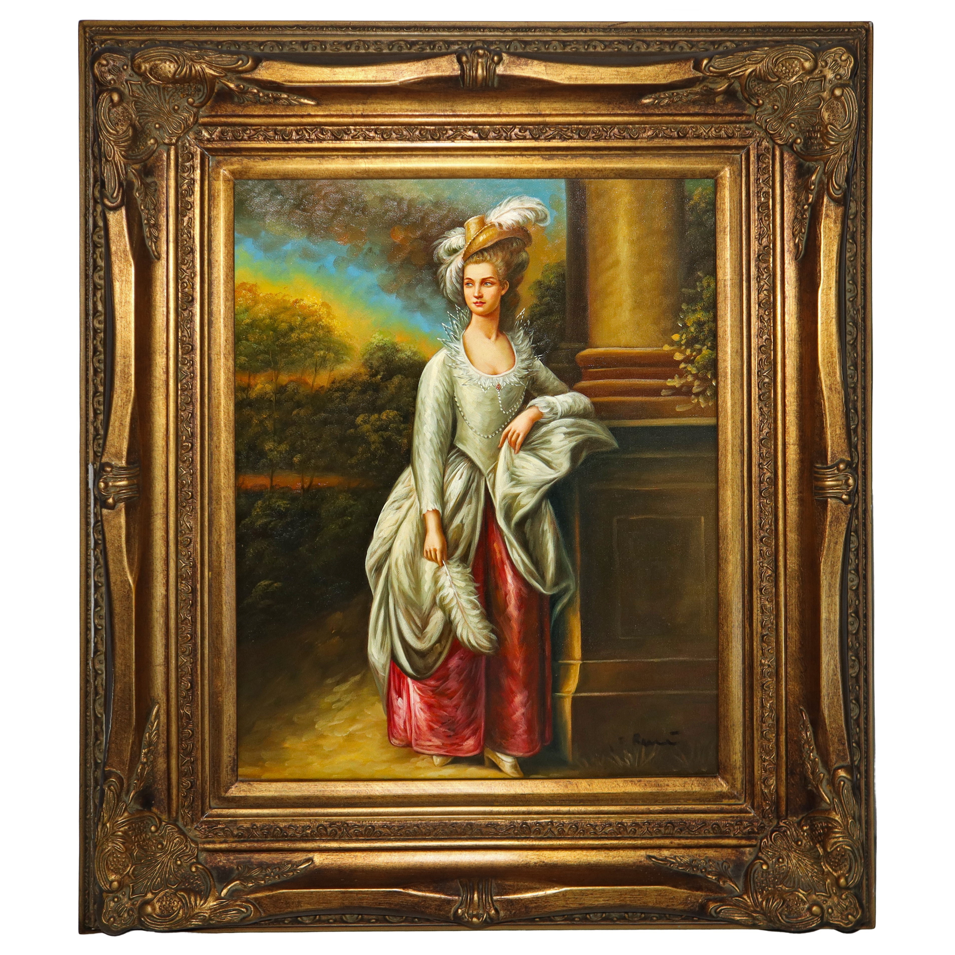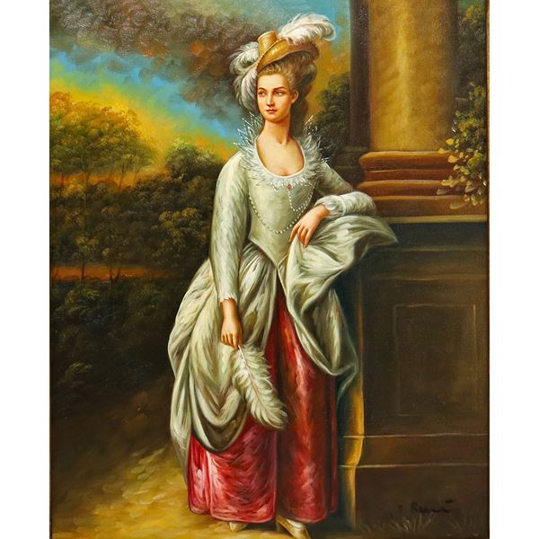 Ritratto di dama in cornice dorata decorata, XX sec.