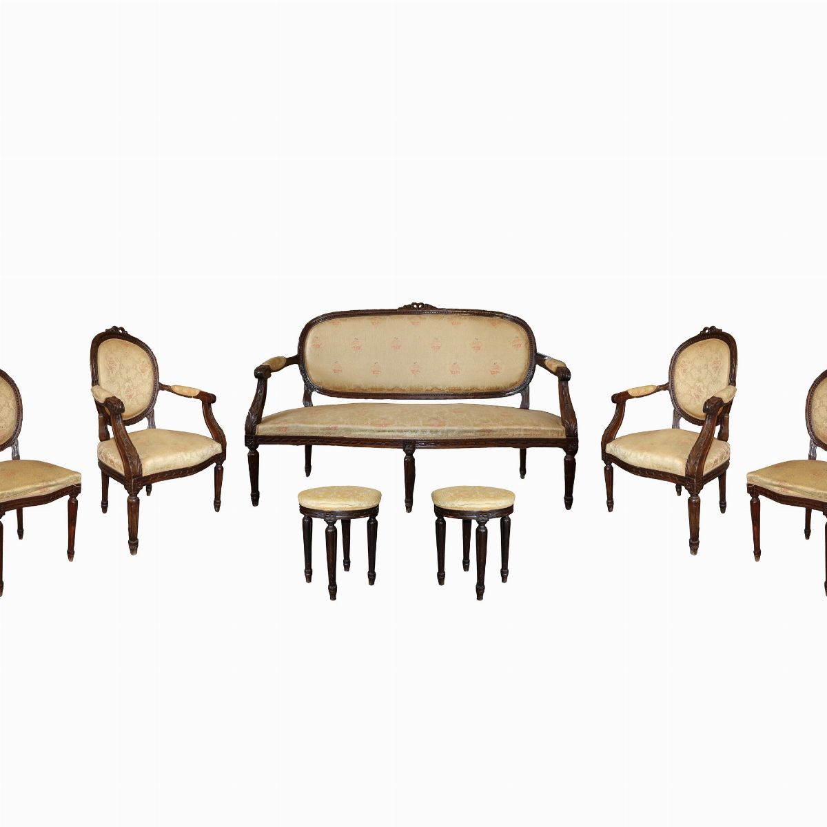Composto da divano, due poltrone, sei sedie e due sgabelli