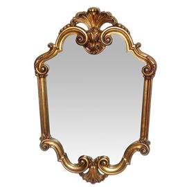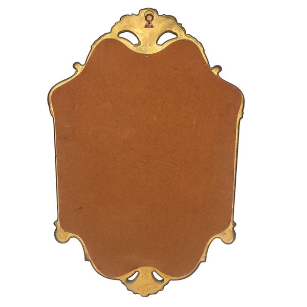 Specchiera sagomata entro cornice dorata decorata con motivo di foglie d'acanto, XX sec.