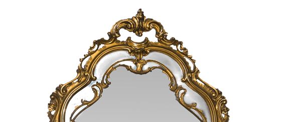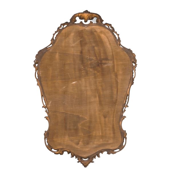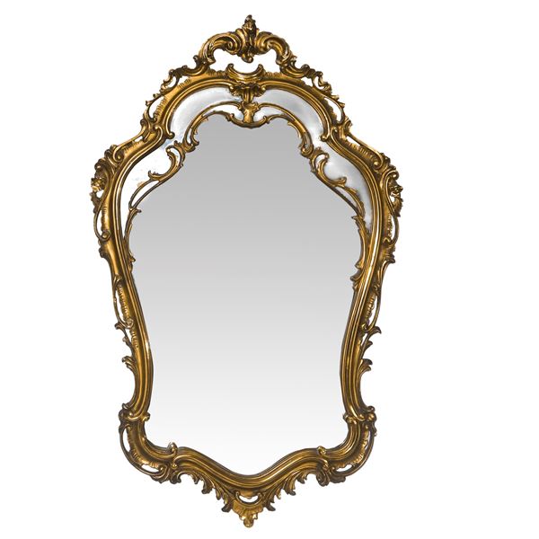 Specchiera sagomata in stile Rococò entro cornice dorata con decori traforati, XX sec.