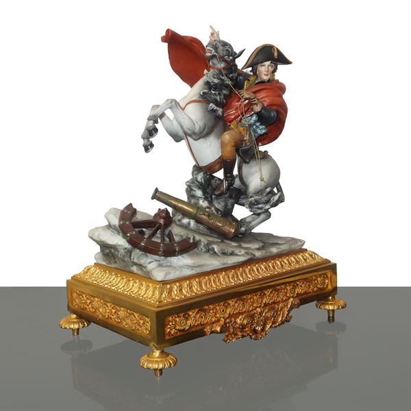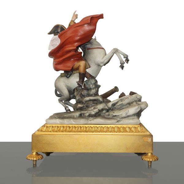 Statuetta su piedistallo di Napoleone Bonaparte che valica le Alpi, XX sec.