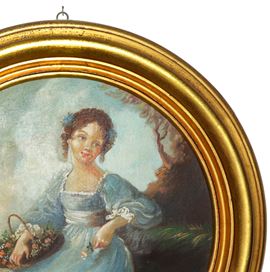 Tondo di dama con cesto di fiori, XX sec.