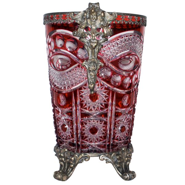 Vaso in vetro rosso con inserti in metallo, XX sec.