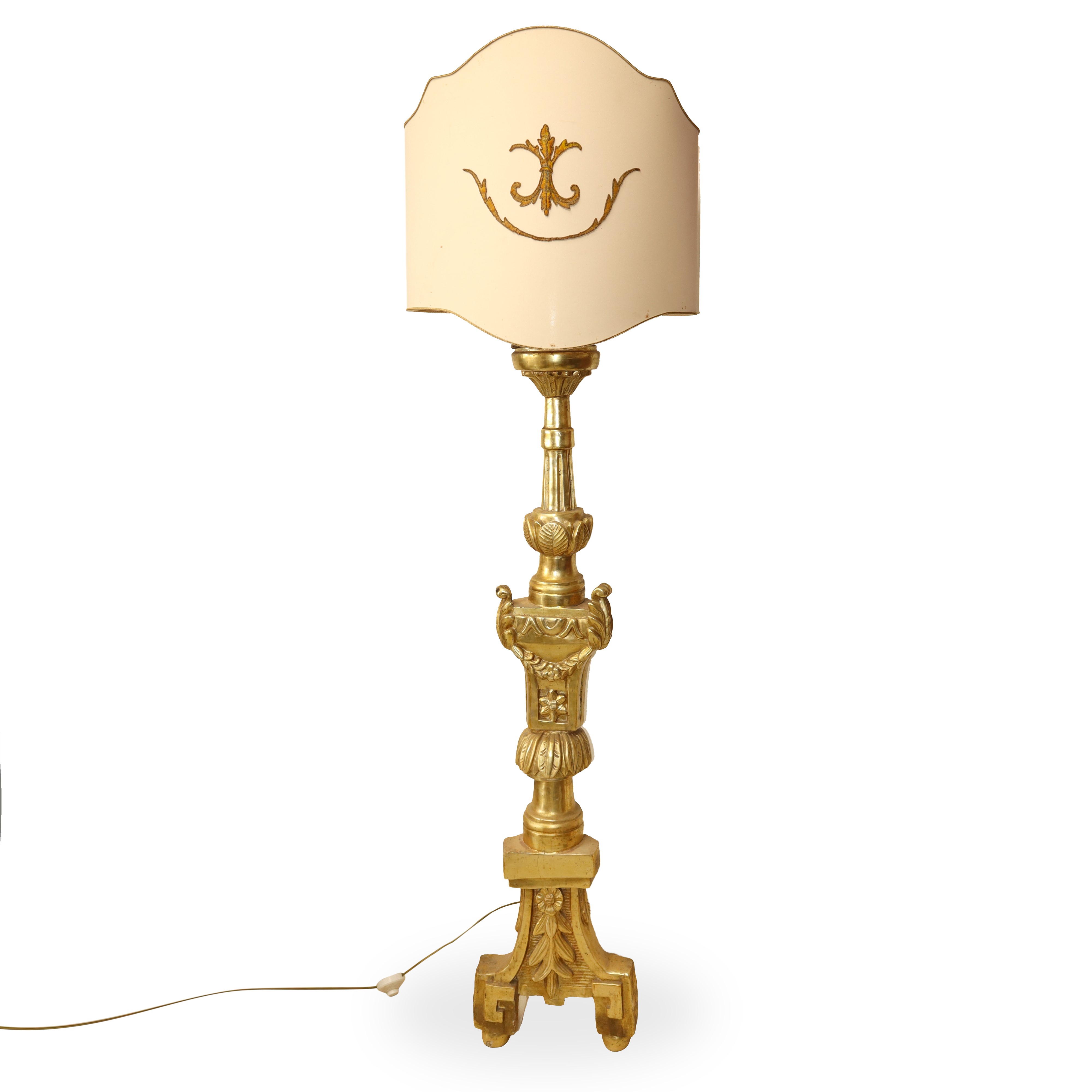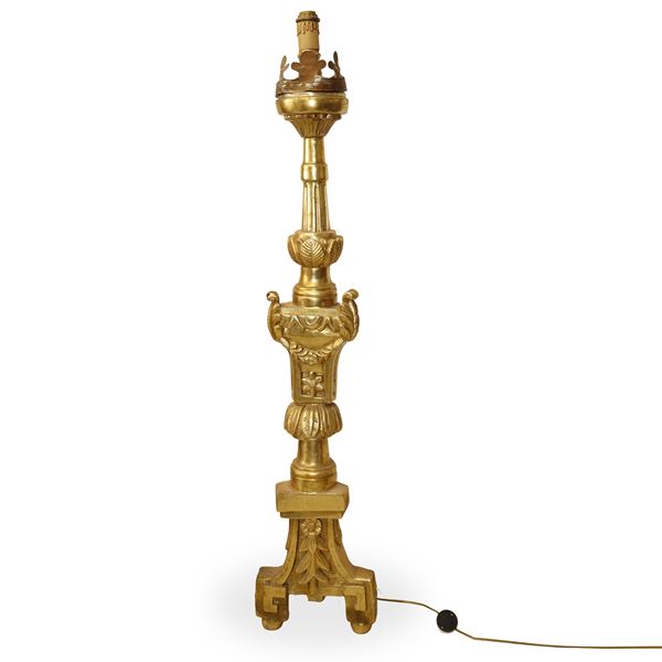 Grande Candeliere in legno dorato, Impero, XIX secolo
