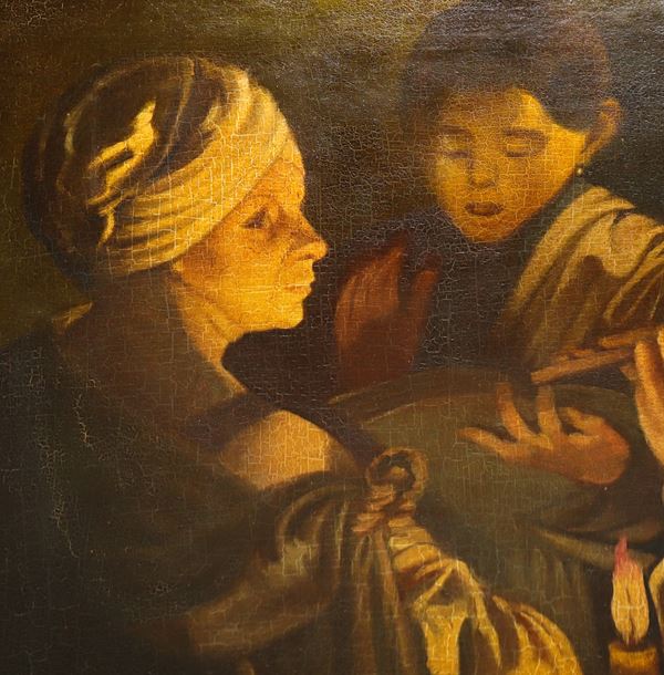 Il dipinto rientra nel genere del “quadro a lume di notte”, un particolare tipo di pittura di gusto barocco in cui una scena all’interno di un ambiente chiuso è illuminata soltanto dal lume di una o più candele.