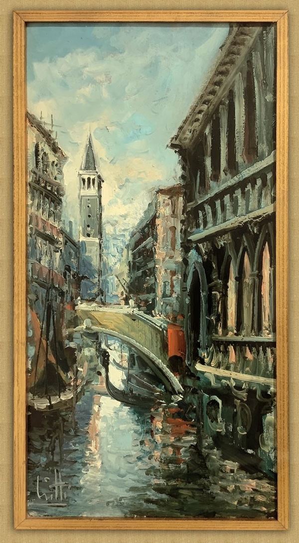 Oil paintinging on canvas depicting a Venetian canal. signed on the lower left corner Liatti .. 60x30 cm, in frame 80x50 cm