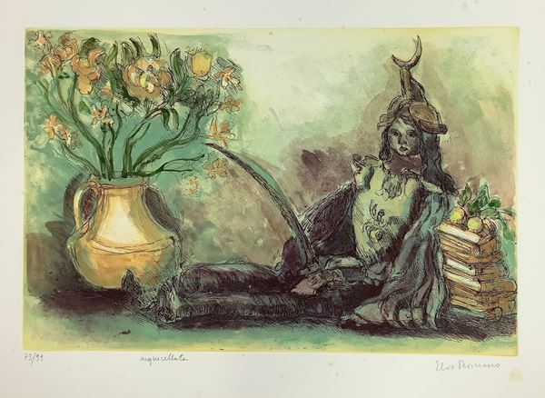 Elio Romano nasce a Trapani ma si trasferisce presto a Catania e diventa apprendista del pittore locale Saro Spina. Nel 1928 studia a Roma alla Scuola libera di nudo e l’anno dopo si iscrive all’Accademia di Belle Arti di Firenze. Diventa allievo di Felice Carena e suo assistente alla fine degli studi. Importante è l’incontro con Giorgio Morandi, altro insegnante dell’Accademia che frequenta e il cui metodo di osservazione diventa un punto fermo nell’arte di Elio Romano. Dopo il corso di scultura che frequenta all’Accademia anche la sua pittura assume un forte senso di plasticità. Ritorna a Catania in maniera definitiva dopo che il suo studio a Firenze viene bombardata. Nella sua terra di origine insegna all’Accademia di Belle Arti di Catania e non smette di dipingere fino alla fine dei suoi giorni. Il suo stile parte dall’Impressionismo ma ha un’evidente tendenza alla struttura realistica.