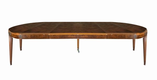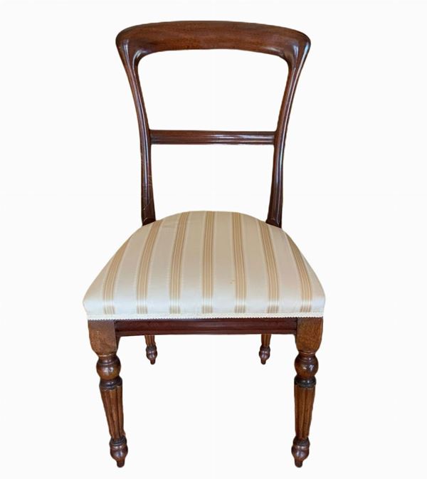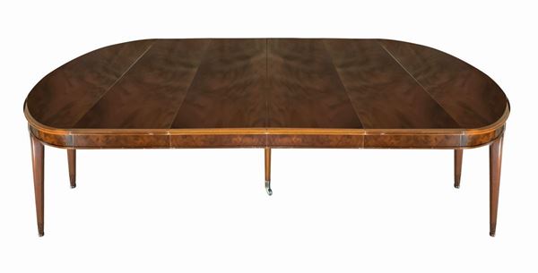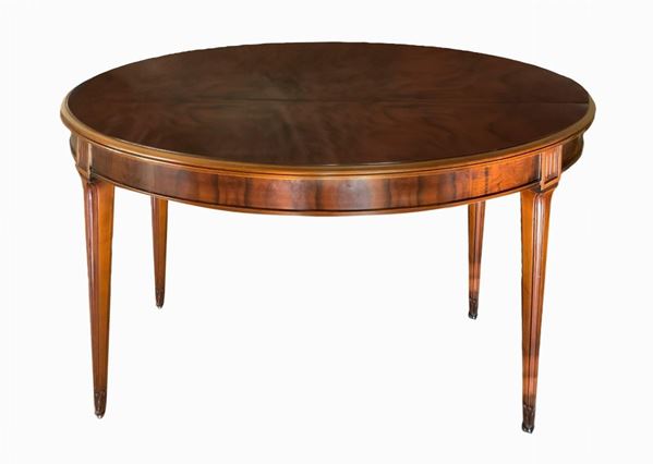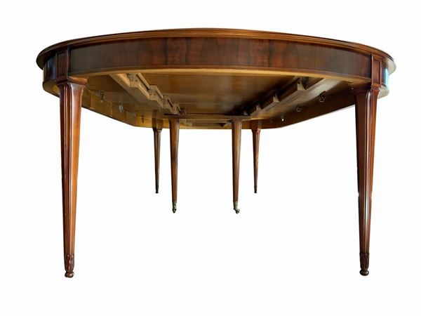 Extendable oval walnut table and n. 4 chairs., 20th century