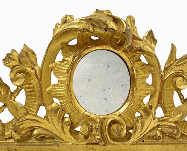 Frieze in leaf golden wood with small central oval mirror, 18th century., XVIII century