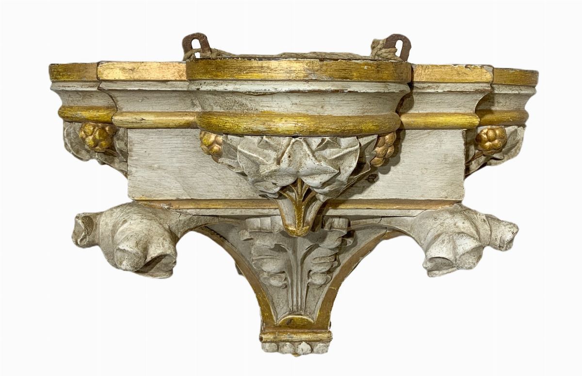 Lacquered and golden wood shelf with acanthus leaves and leaves decorations and flowers, late nineteenth century., Late nineteenth century