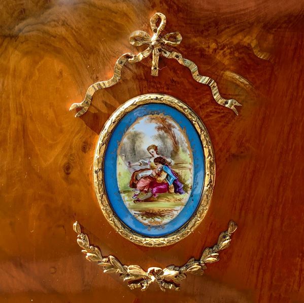 Central and lateral applications of Sevre-type porcelain. Inlays, perfiles and applied bronzes.