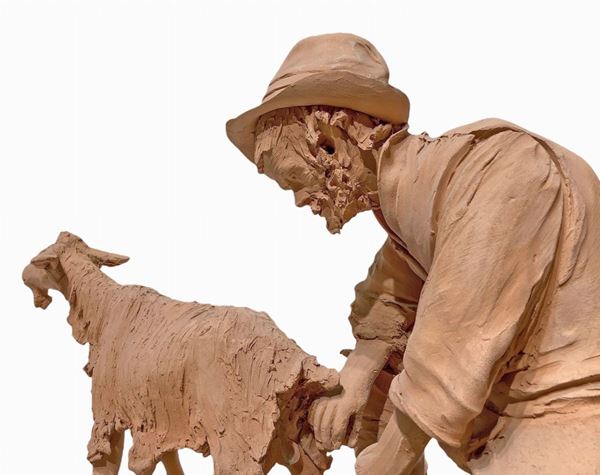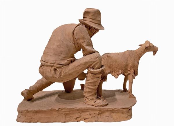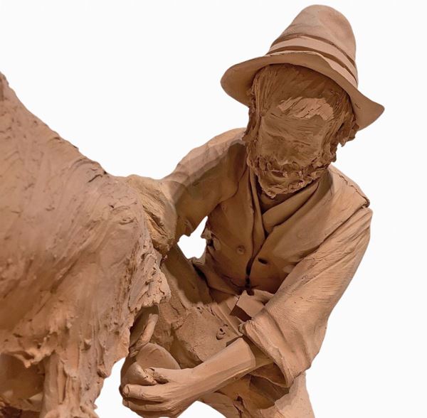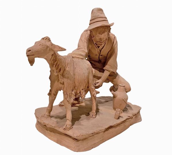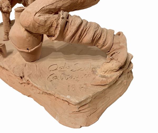 Terracotta sculpture, signed Olindo Scuto, Caltagirone, 1977.