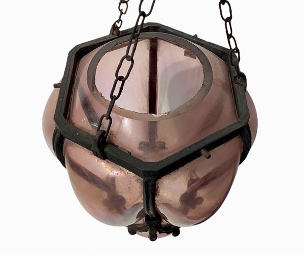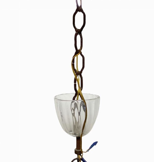 Ribbed with gold scalloped top edge, three lights. Present small spinning & nbsp;