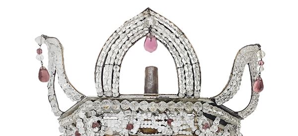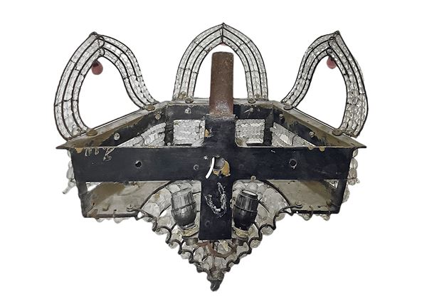 Brass structure and decoration in glass balls with faceted surface. To re-select