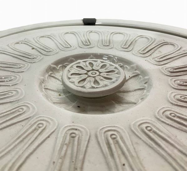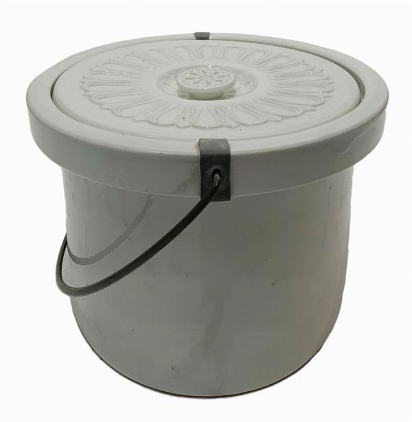 In legno di mogano e vaso in maiolica invetriata bianca di Caltagirone