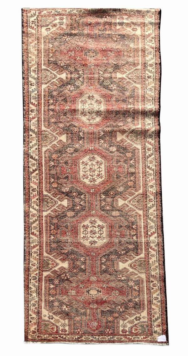 In shades of red, with phytomorphic elements.