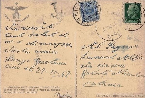 Traveled 20/10/42 Illustrator… Edition of Art V. E. BOERI Rome