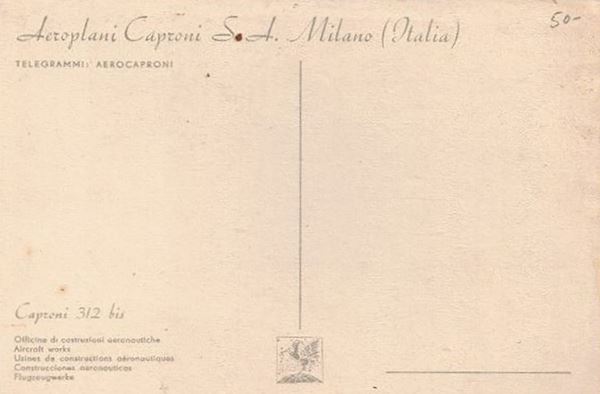 Caproni S.A.Airplanes Milan 312 / Bis. Fascist aviation propaganda. Not traveled. BCA. In excellent condition. Illustrator Fernando Rebagliati (1904 - 1980). Low-wing multirole bombing aircraft.