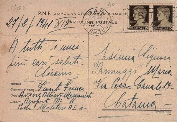 Corrado Mancioli (Rome 1904 - Jesi 1958). Traveled in 1941