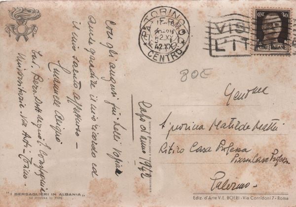 from painting by Pepe. Traveled in 1942. Art ed. V.E. Boeri - Rome. Very good condition.