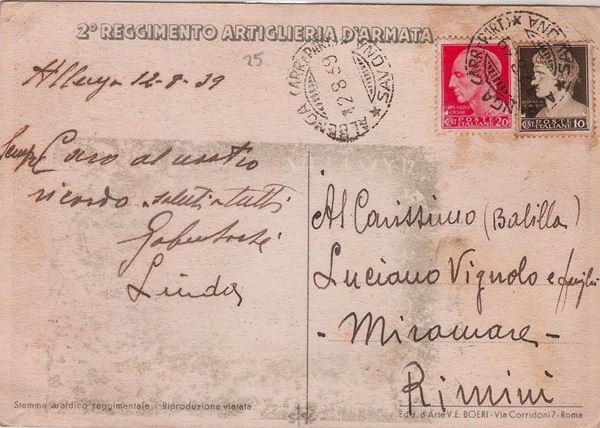 Traveled 12/08/1938. Art Ed. V.E. Boeri Rome. Good condition. & Nbsp;